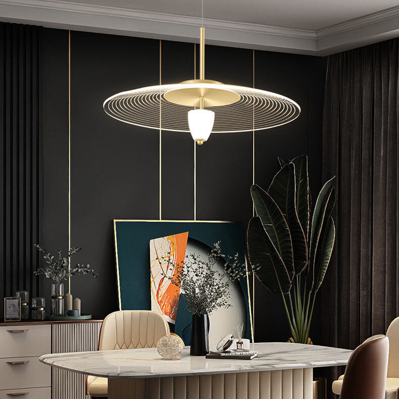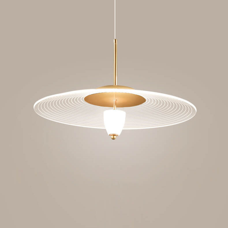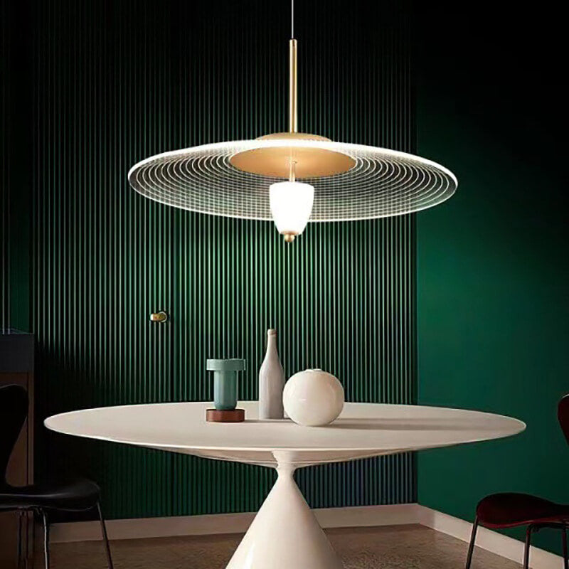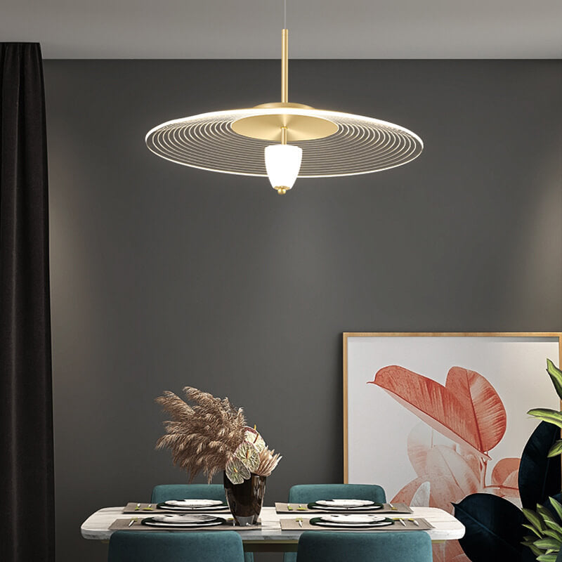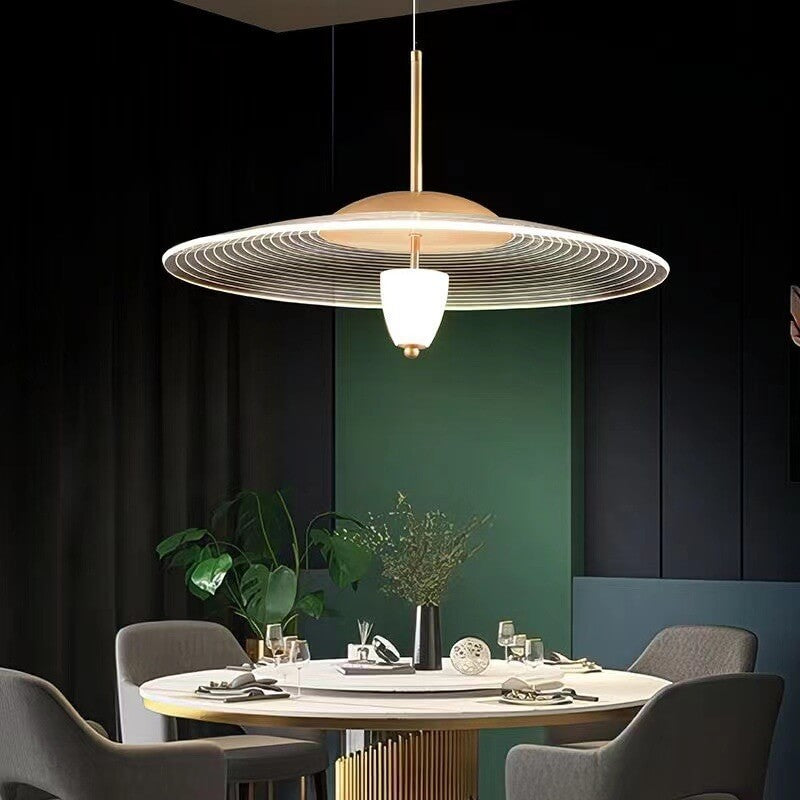 Contemporary Scandinavian Round Flying Saucer Acrylic Metal LED Pendant Light For Dining Room