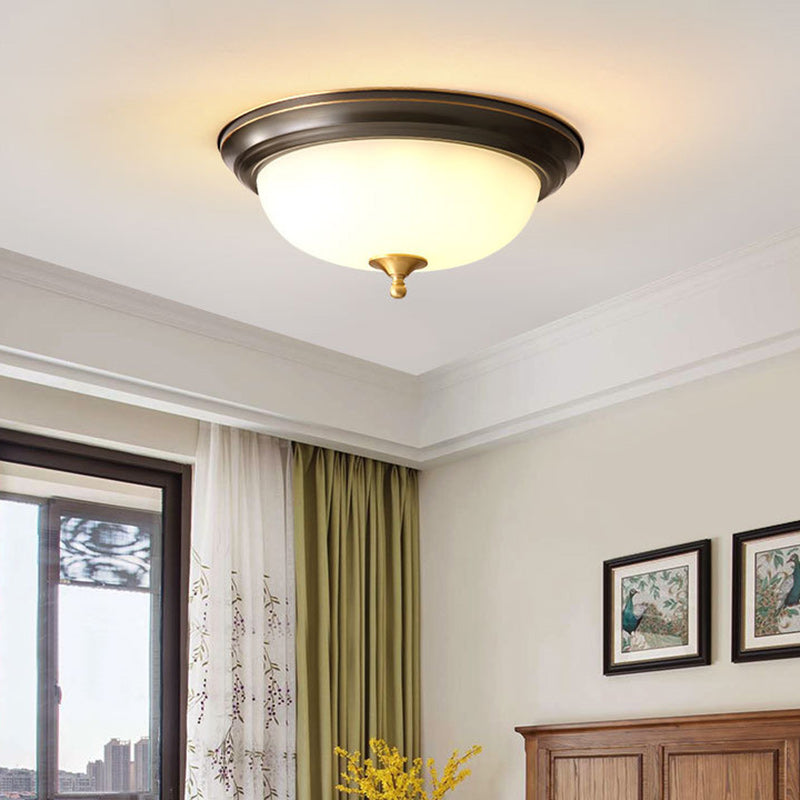 Contemporary Scandinavian Round Half Round Frosted Glass Copper 2/3/4 Light Flush Mount Ceiling Light For Living Room