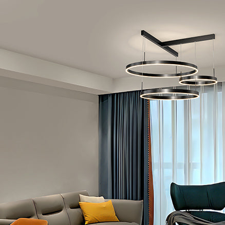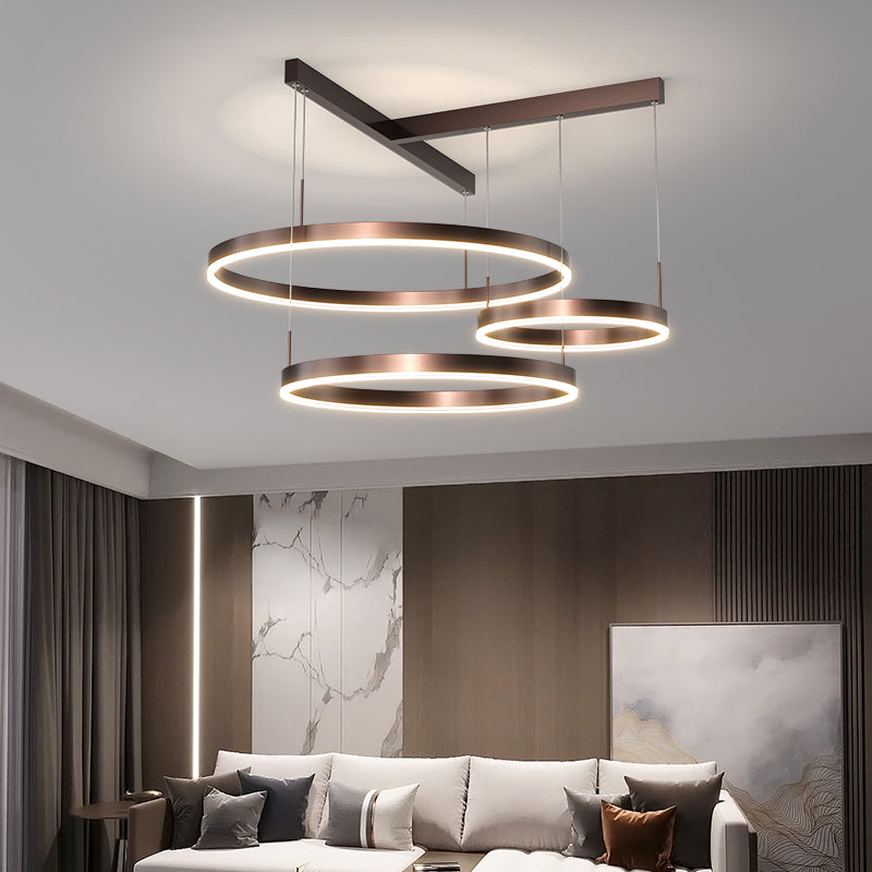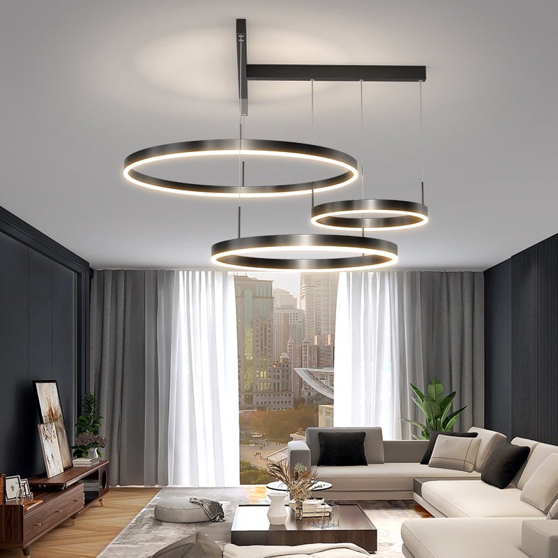 Contemporary Scandinavian Round Multi Tier T-Base Aluminum Acrylic LED Pendant Light For Living Room