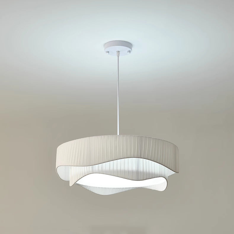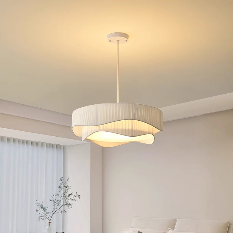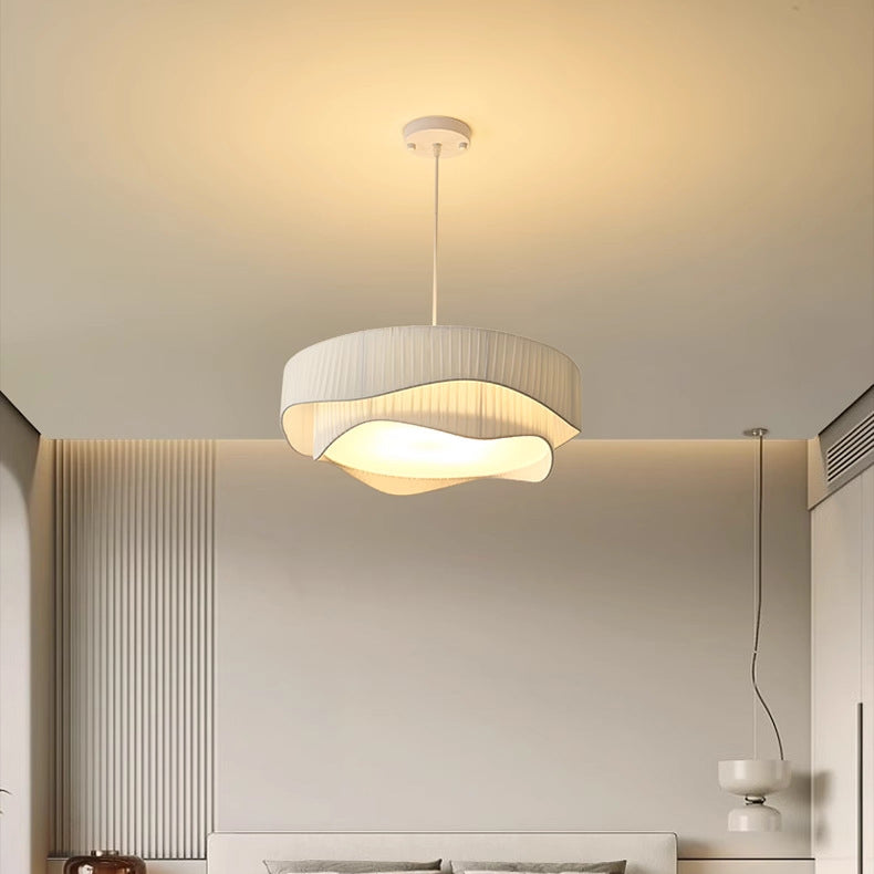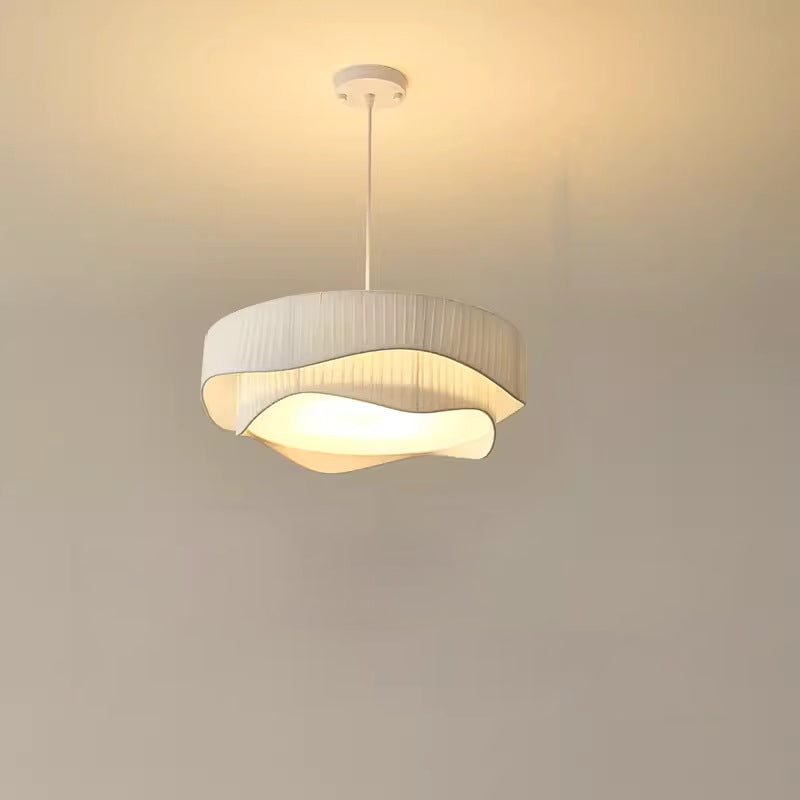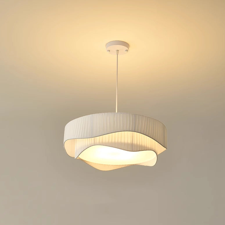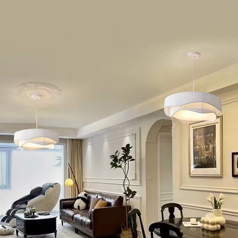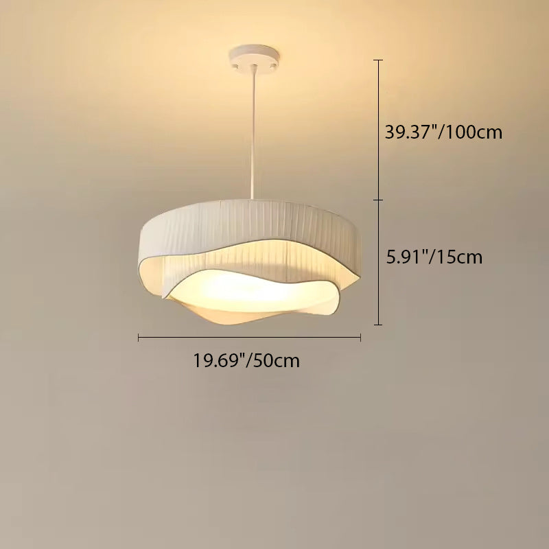 Contemporary Scandinavian Round Ruffles Cone Fabric Acrylic Iron 4/5 Light Chandelier For Living Room