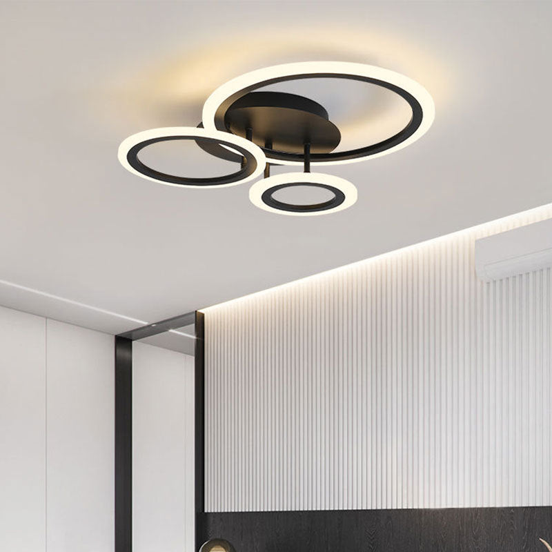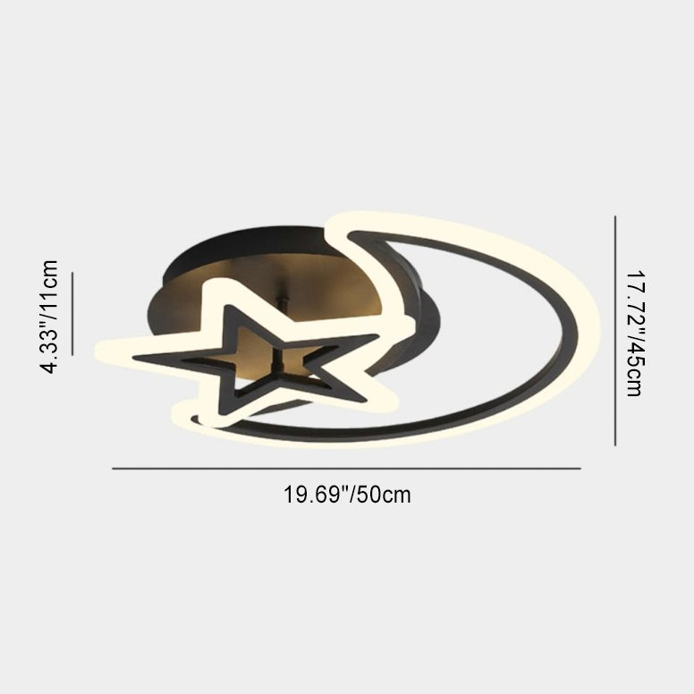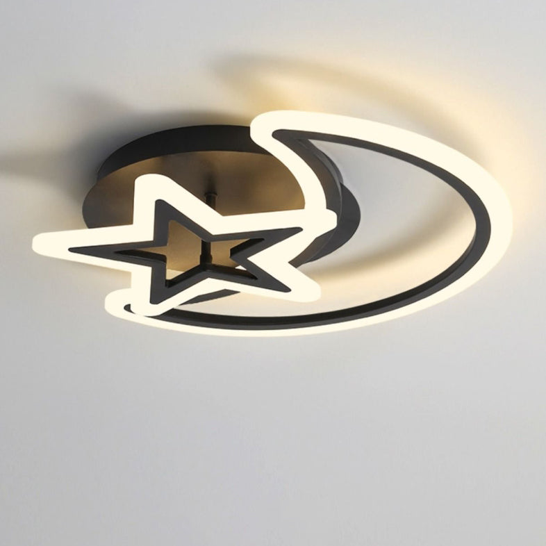 Contemporary Scandinavian Round Square Star Moon Combo Iron Acrylic LED Semi-Flush Mount Ceiling Light For Bedroom