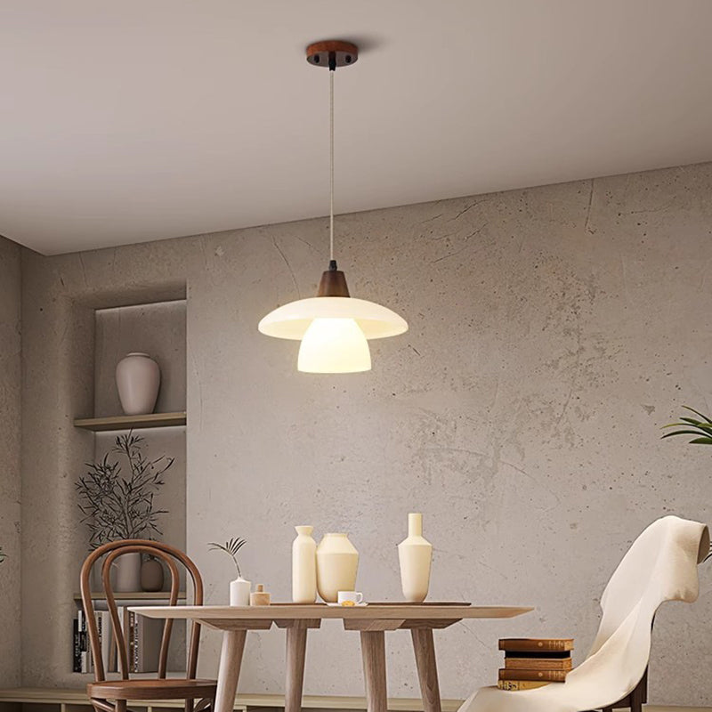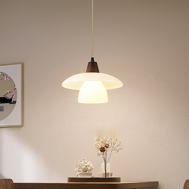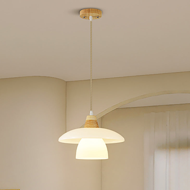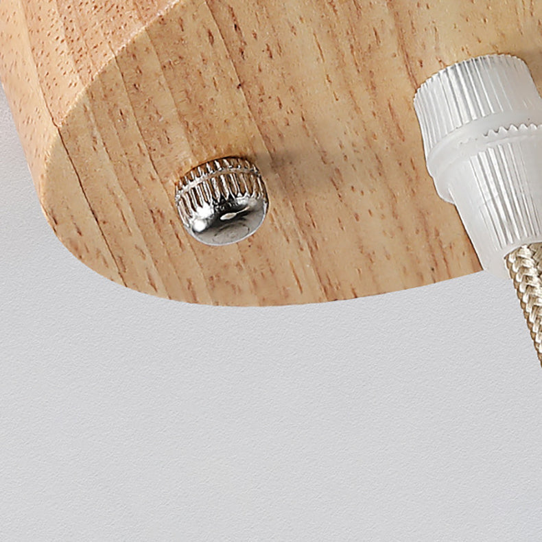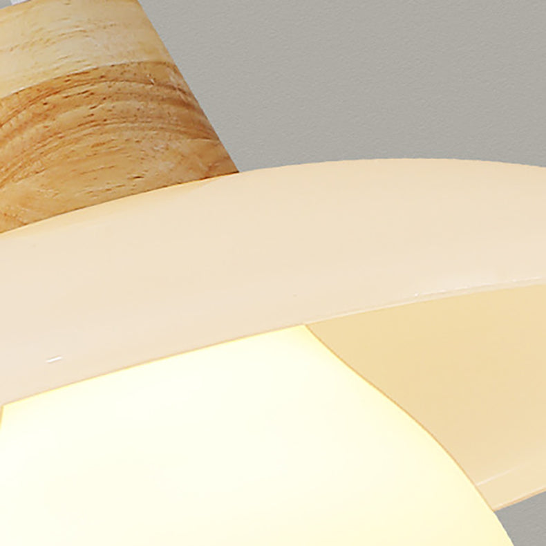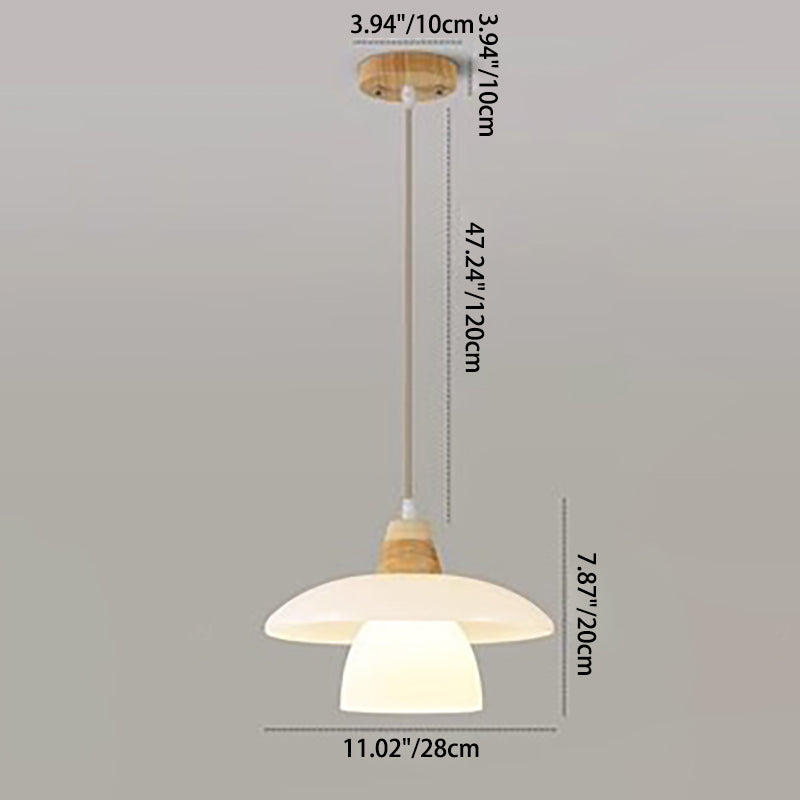 Contemporary Scandinavian Round Table Bowl Flared Oak Glass 1-Light Pendant Light For Bedroom