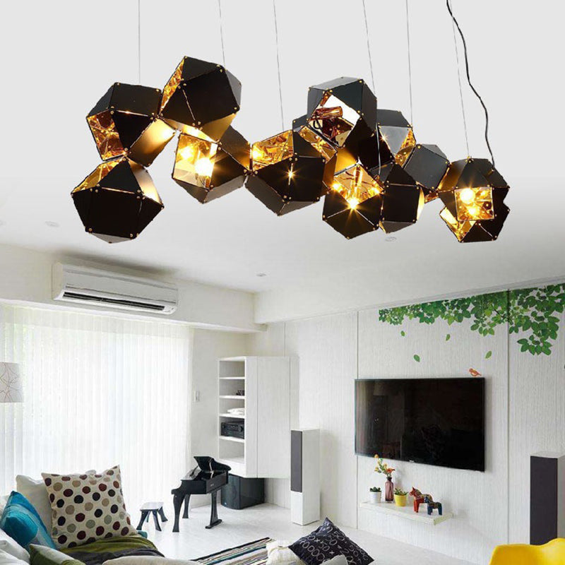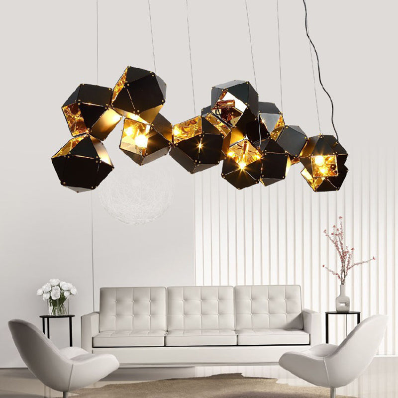 Contemporary Scandinavian Rubik's Cube Polyhedron Stainless Steel 6/8/10/12 Light Island Light Chandelier For Dining Room
