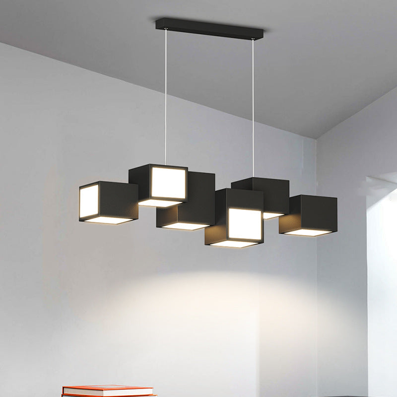 Contemporary Scandinavian Rubik's Cube Staggered Square Iron Acrylic LED Island Light Chandelier For Dining Room