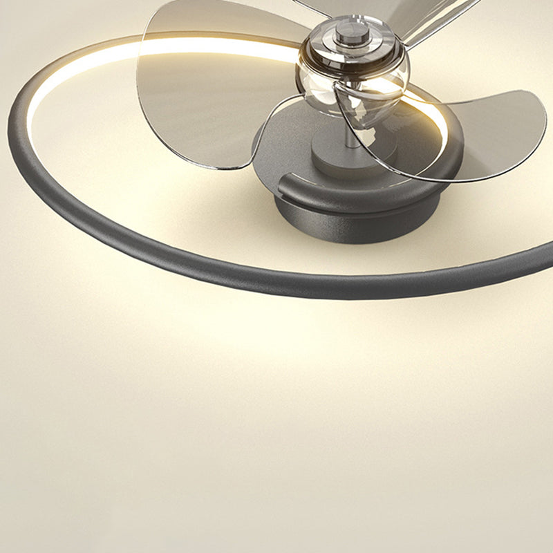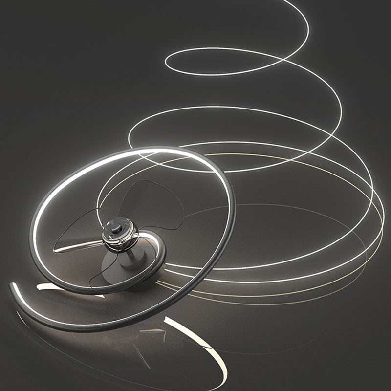 Contemporary Scandinavian Silicone Aluminum Linear Semi-Round LED Semi-Flush Mount Ceiling Fan Light For Bedroom