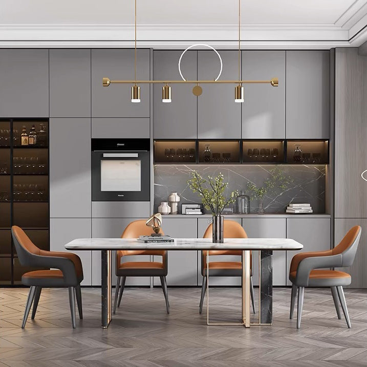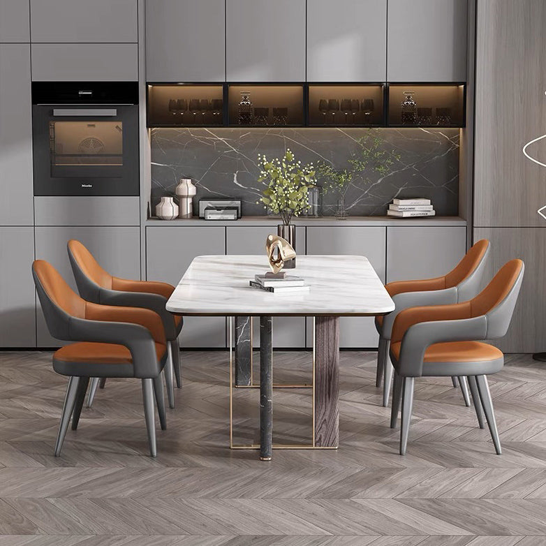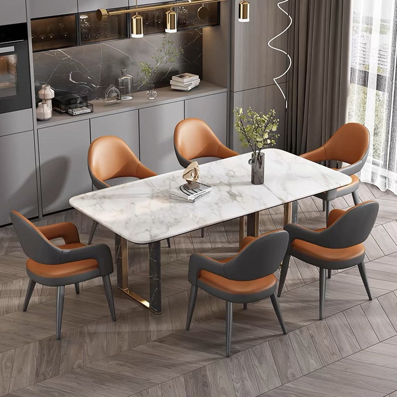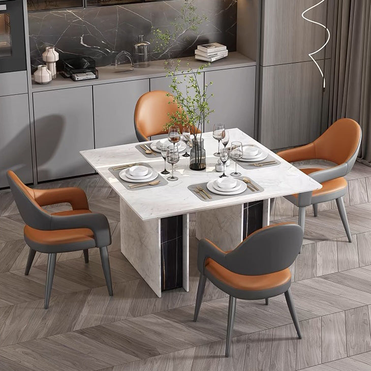 Contemporary Scandinavian Square Cushion Microfiber Leather Iron Backrest Armrest Or Dining Room