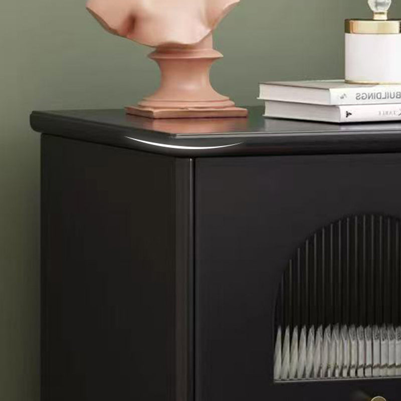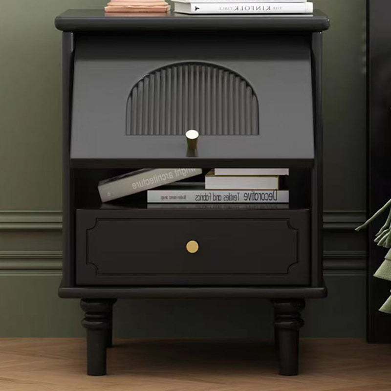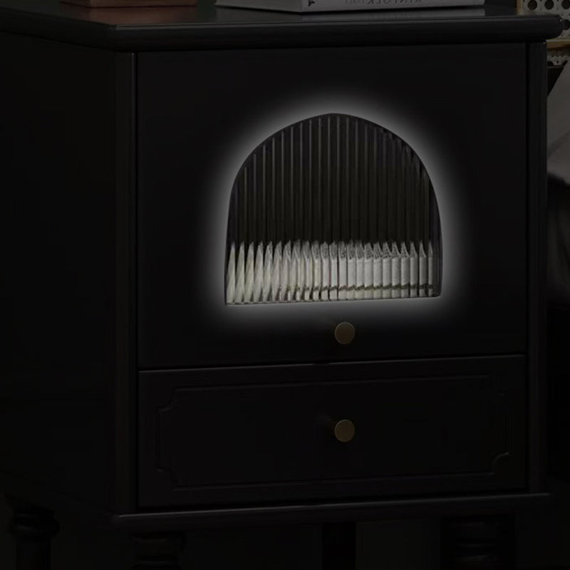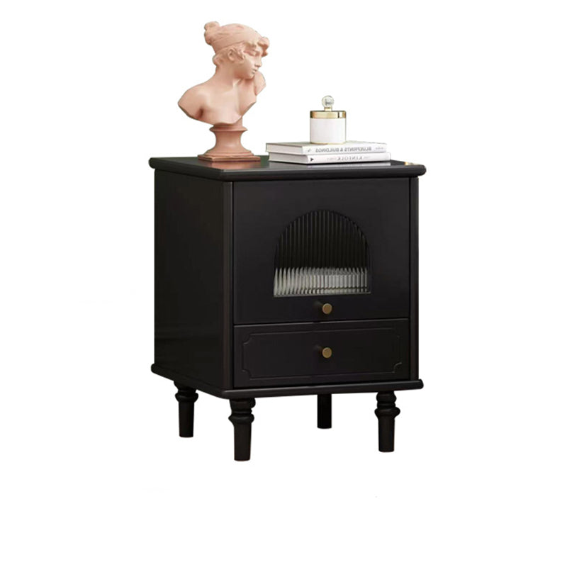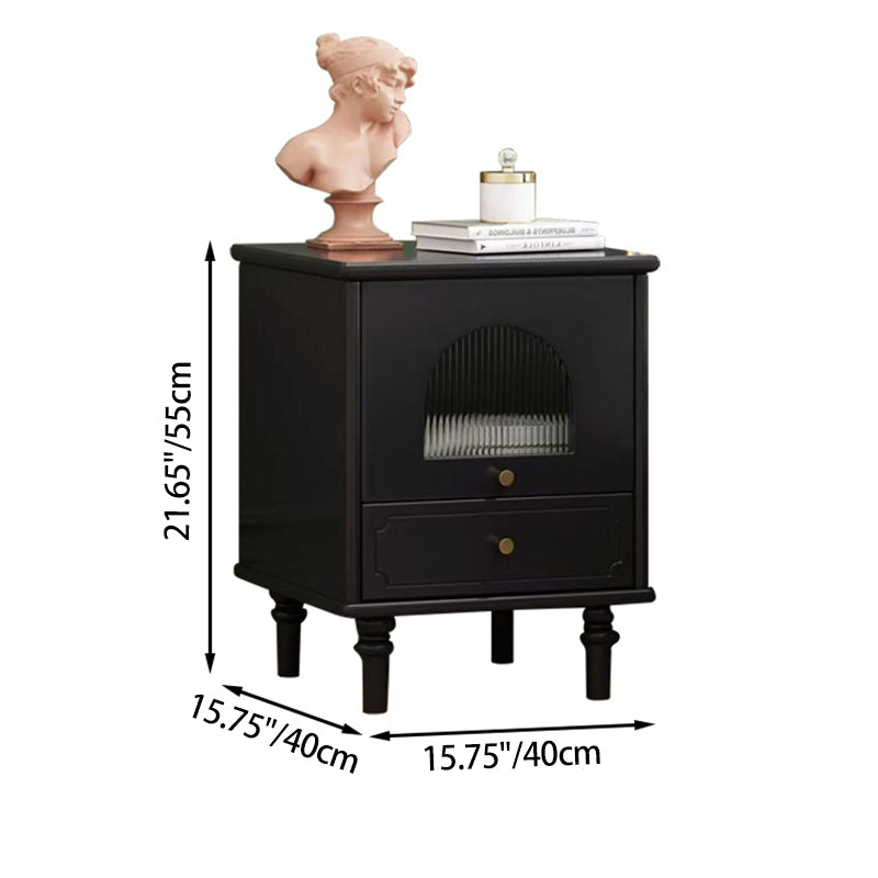 Contemporary Scandinavian Square Solid Wood Glass Nightstand 1-Drawer For Bedroom
