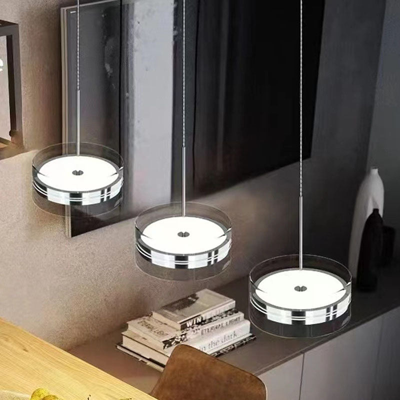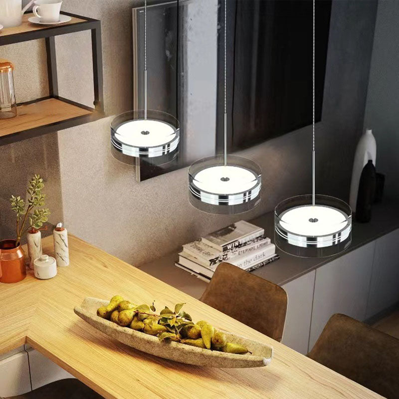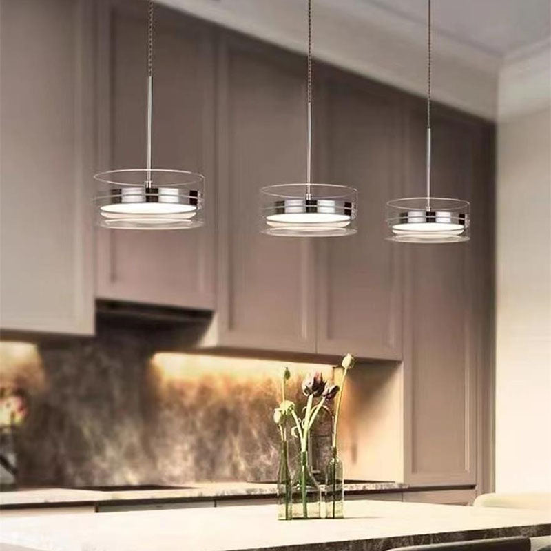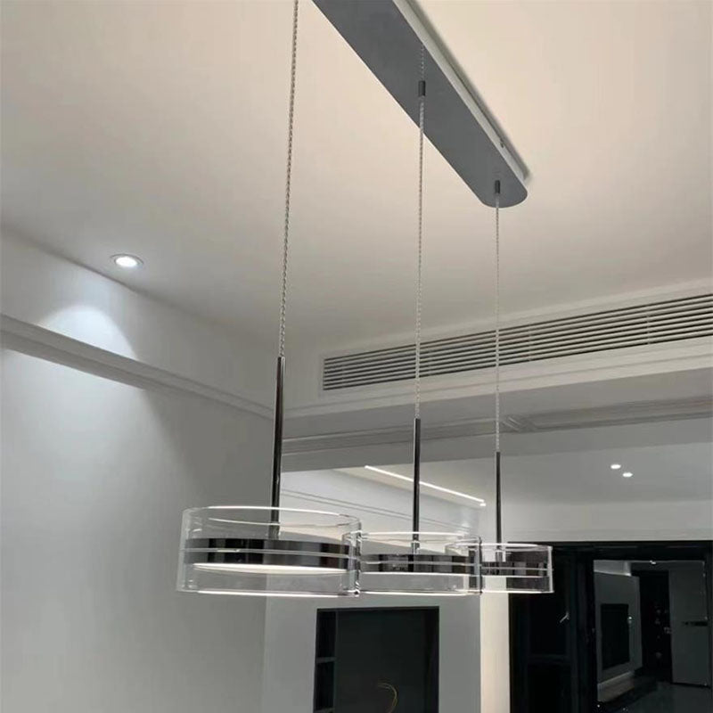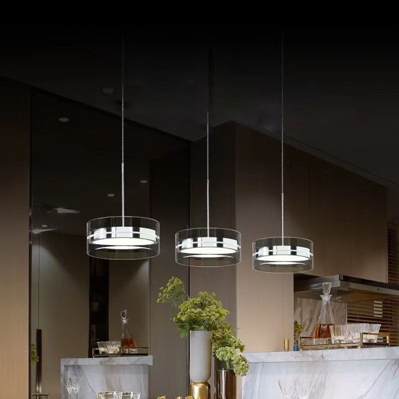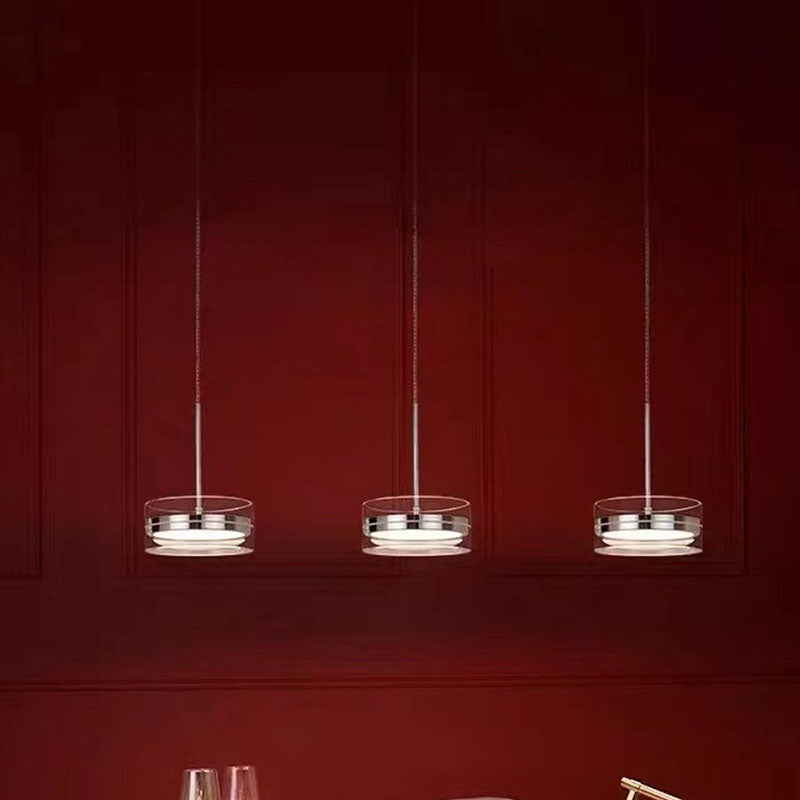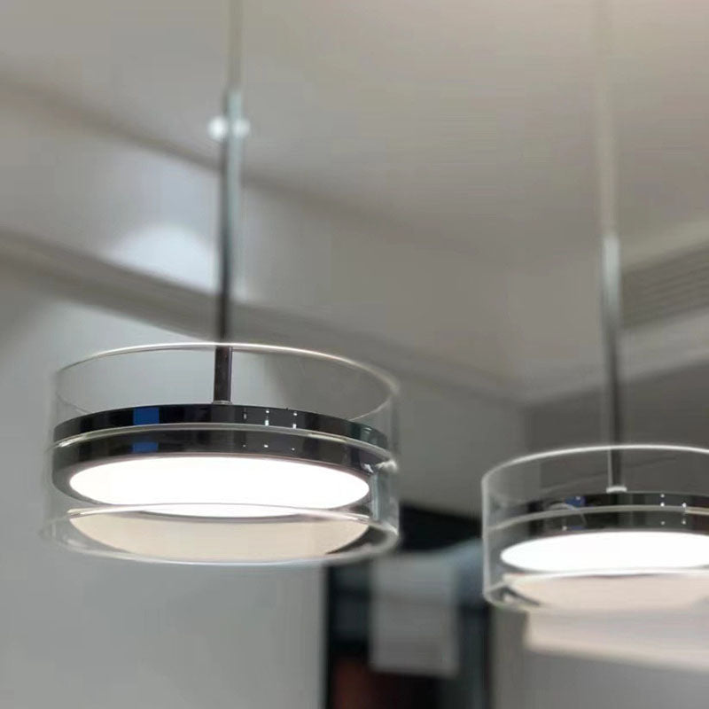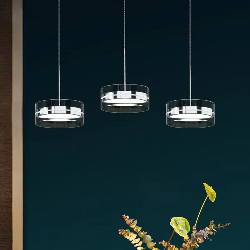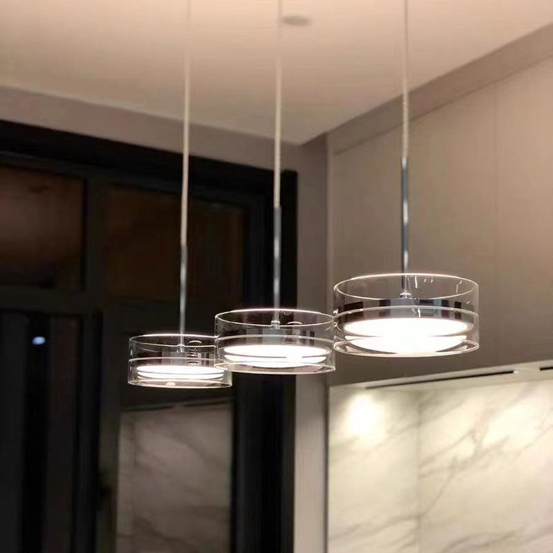 Contemporary Scandinavian Stainless Steel Glass Cylinder Shade LED Island Light Chandelier For Dining Room