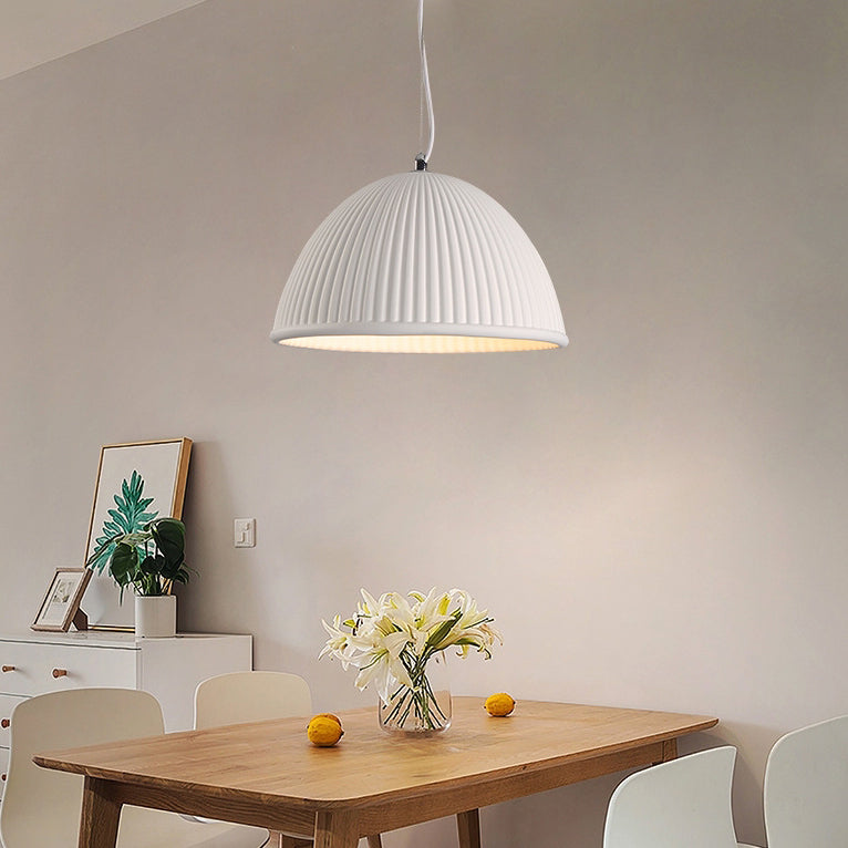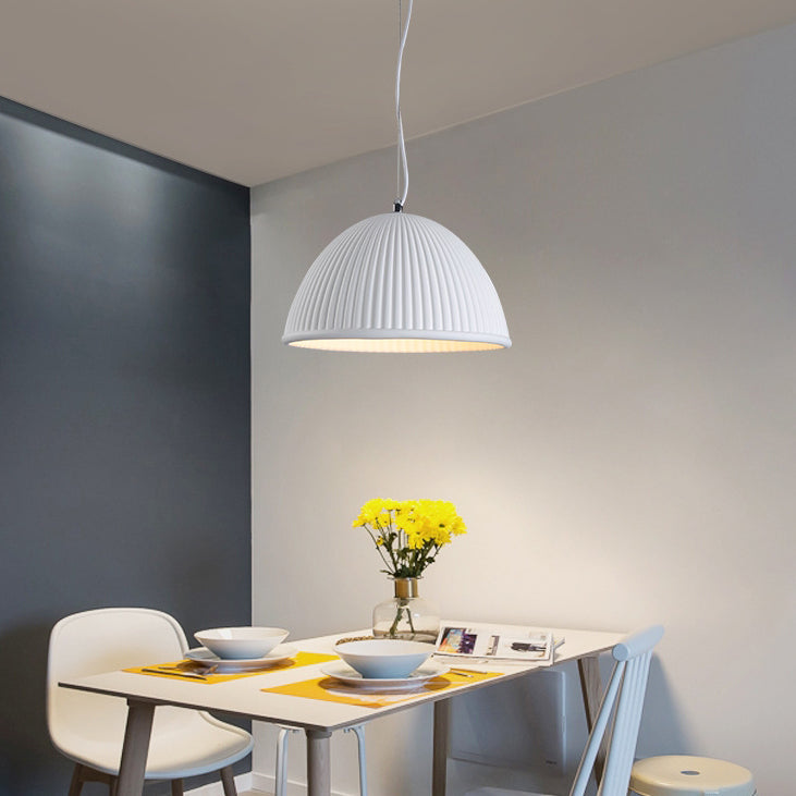 Contemporary Scandinavian Striped Semicircle Resin Shade 1-Light Pendant Light For Bedroom