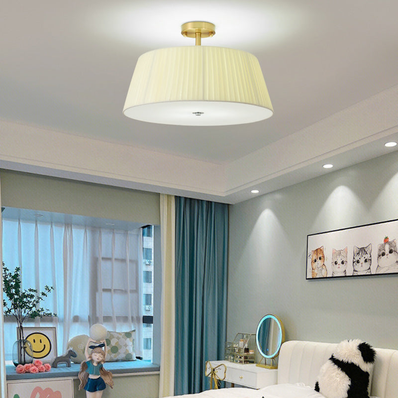 Contemporary Scandinavian Tapered Fabric Shade Iron Acrylic 3/5 Light Semi-Flush Mount Ceiling Light For Bedroom