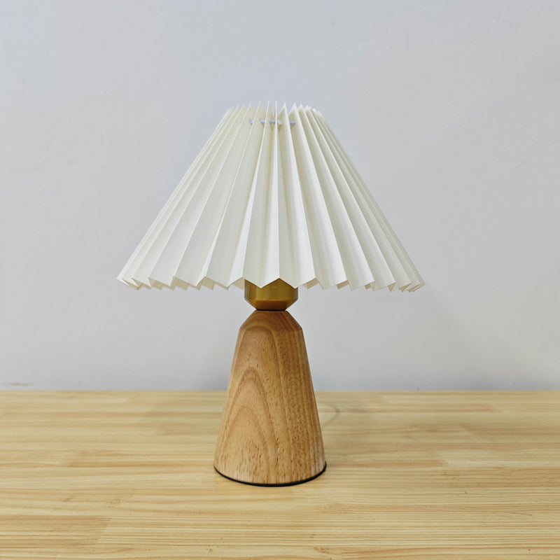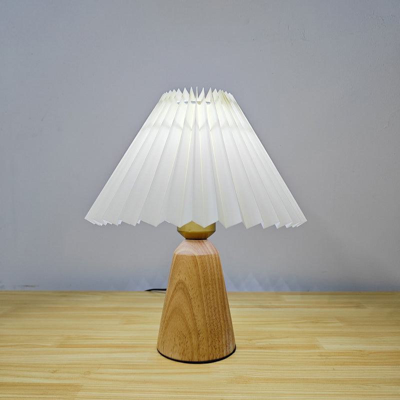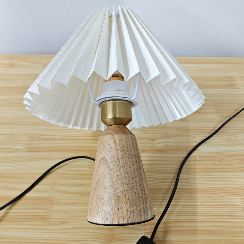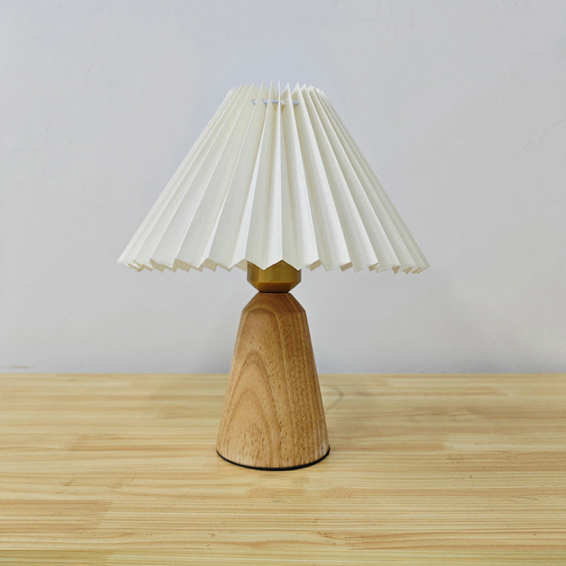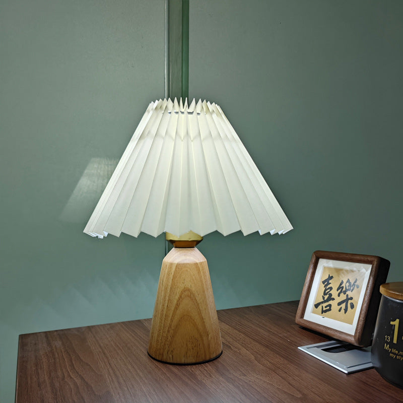 Contemporary Scandinavian Trapezoidal Pleated Fabric Wood 1-Light Table Lamp For Bedroom
