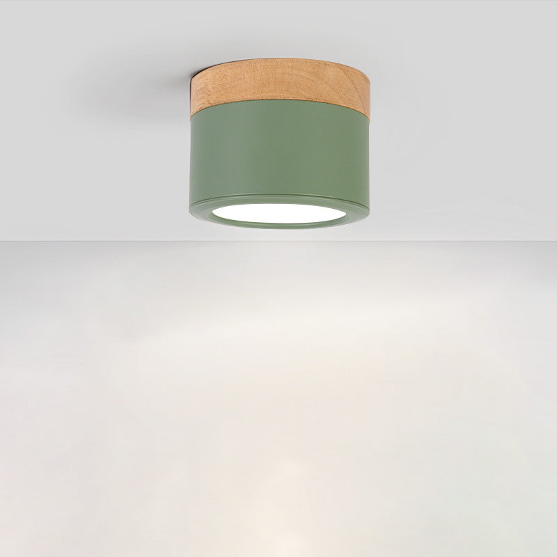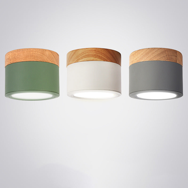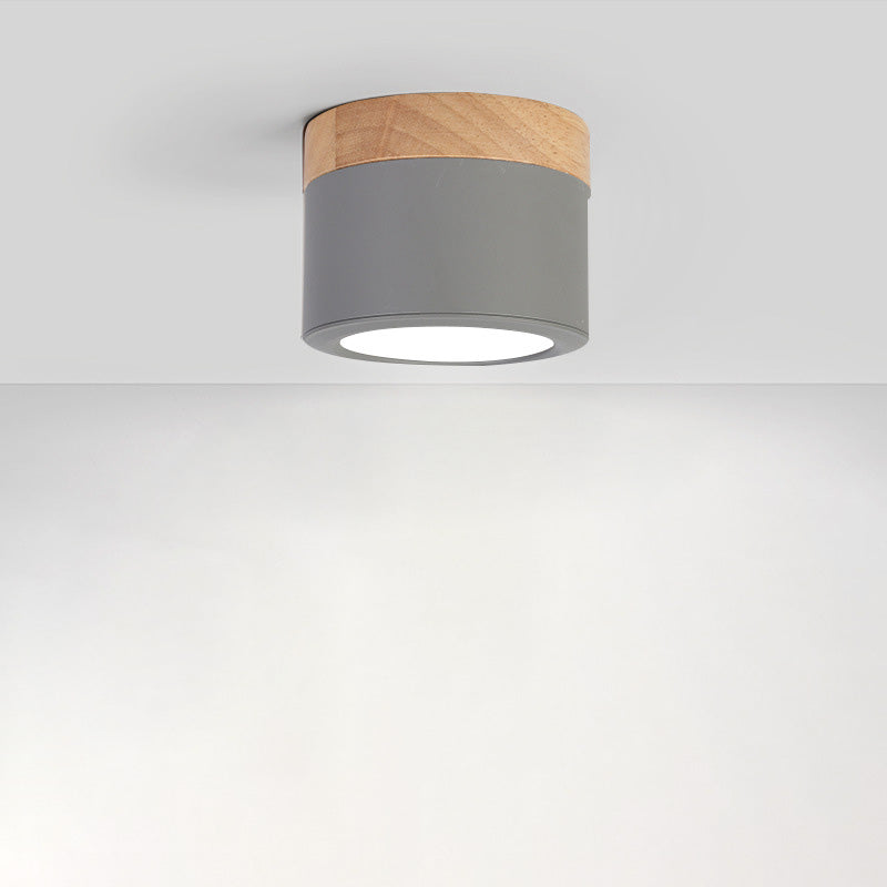 Contemporary Scandinavian Wood Iron Acrylic Cylinder LED Flush Mount Ceiling Light For Hallway