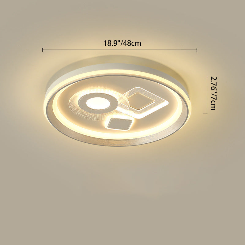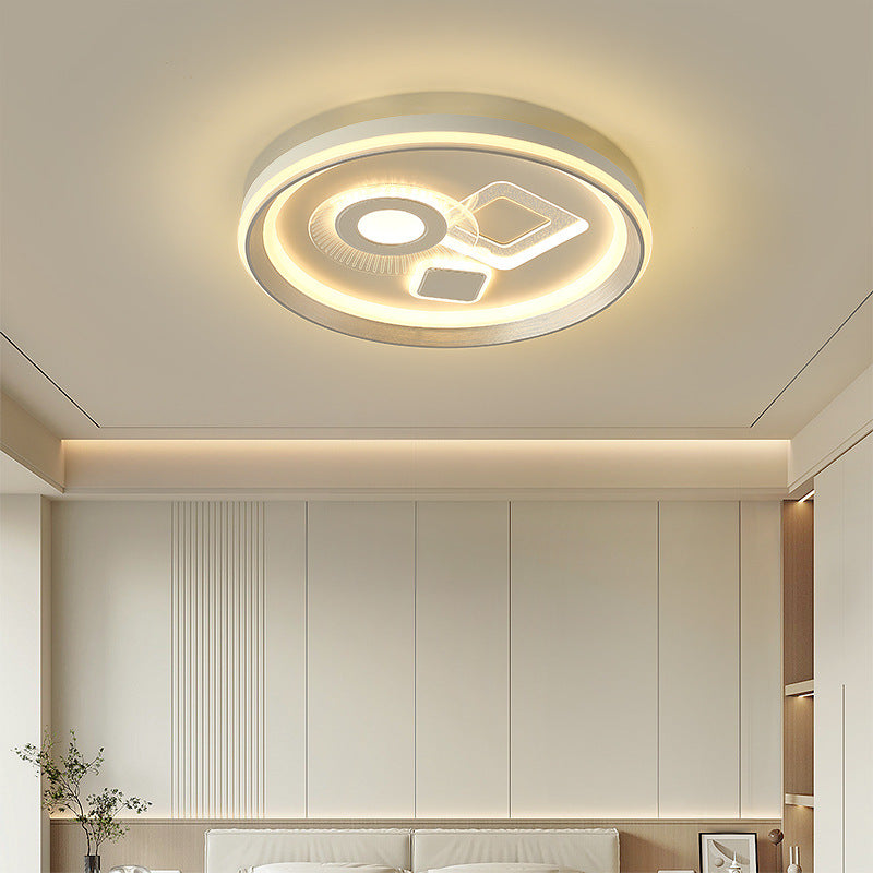 Contemporary Simplicity Iron Acrylic Geometric Round LED Flush Mount Ceiling Light For Bedroom