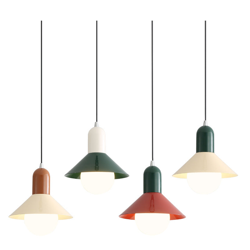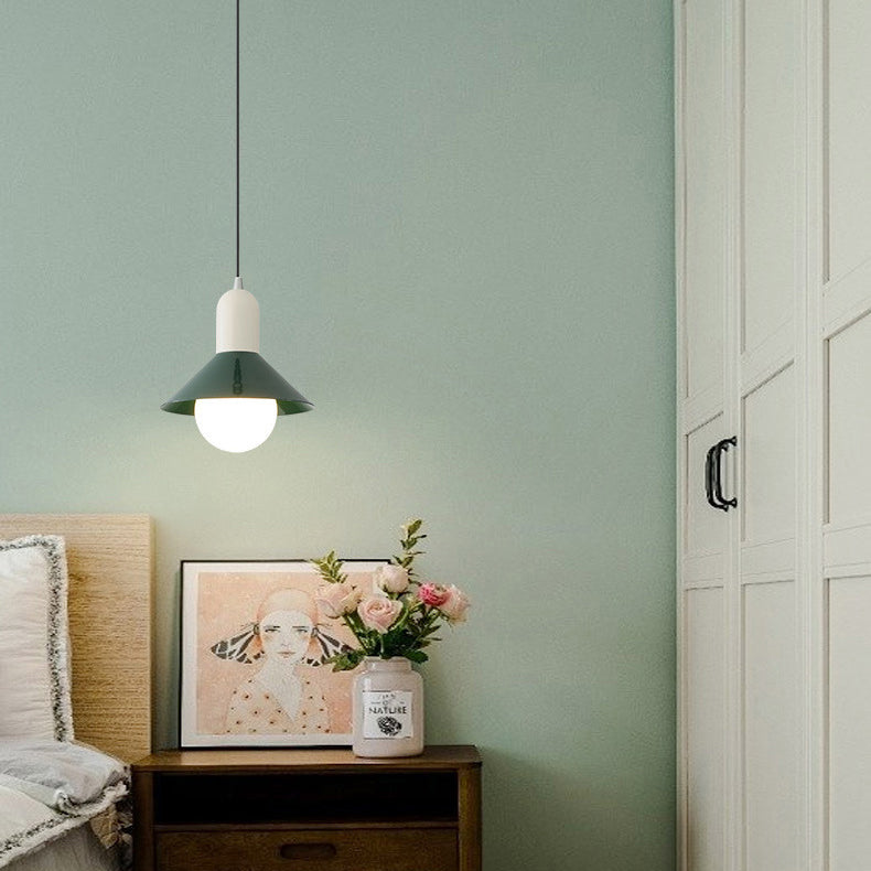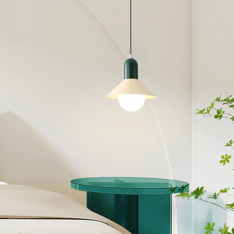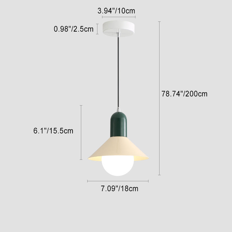 Contemporary Simplicity Macaron Iron Geometric Cone Shape 1-Light Pendant Light For Living Room