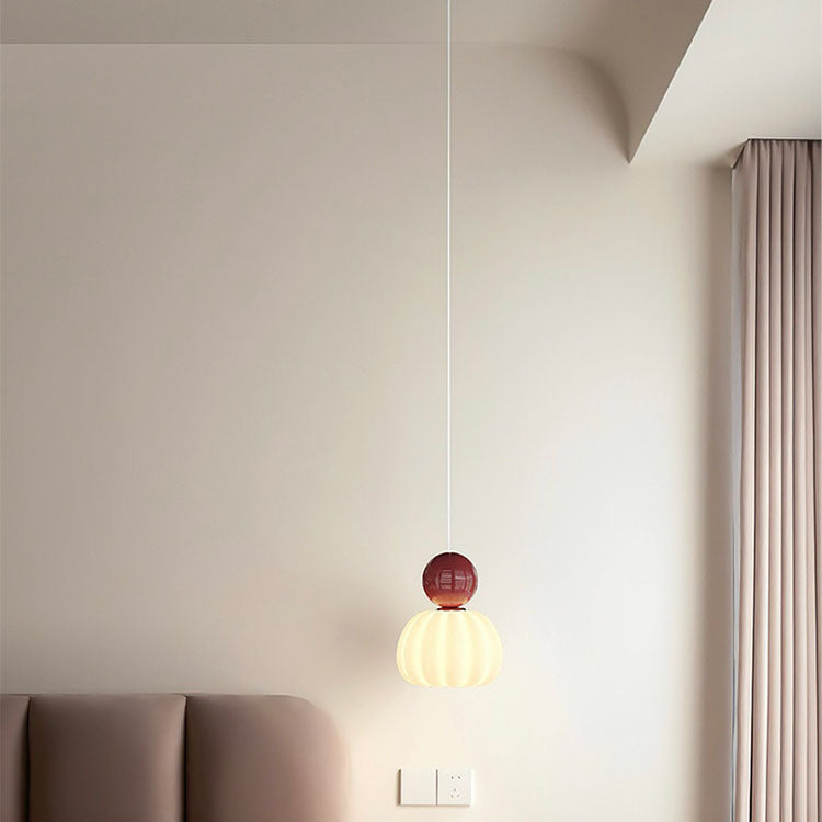 Contemporary Simplicity Pumpkin PE Shade Iron Ball LED Pendant Light For Bedroom