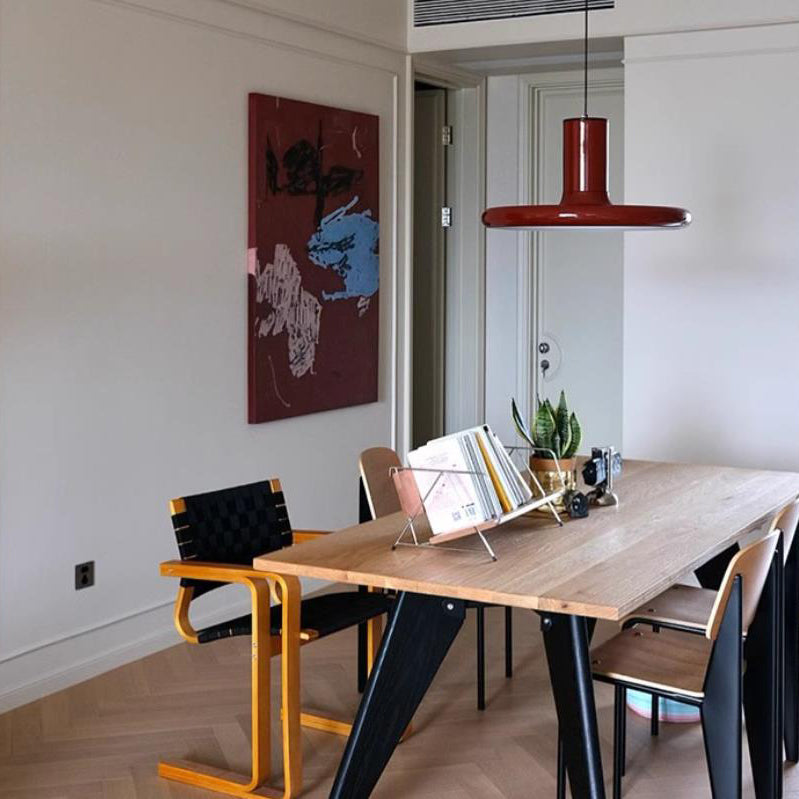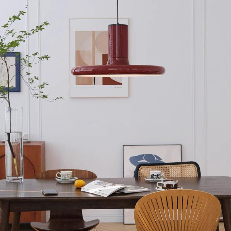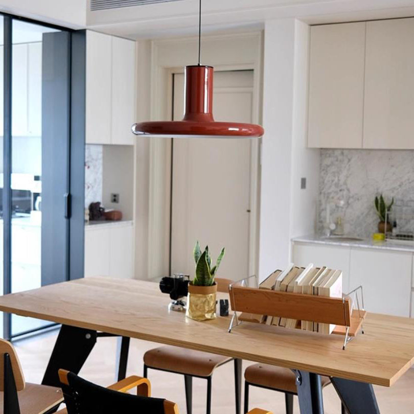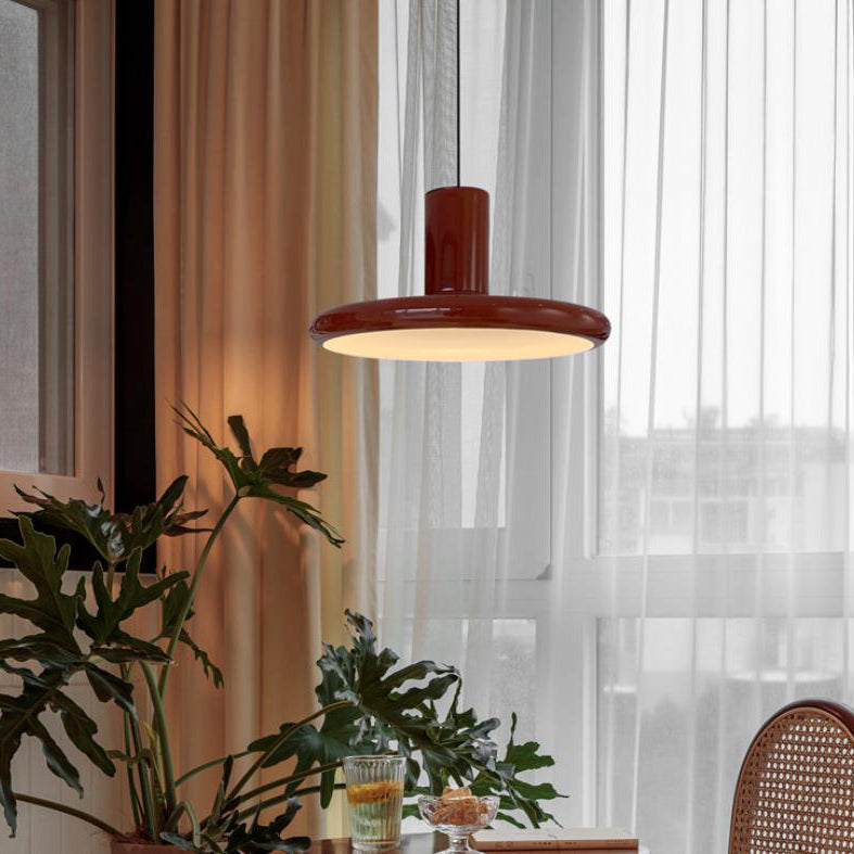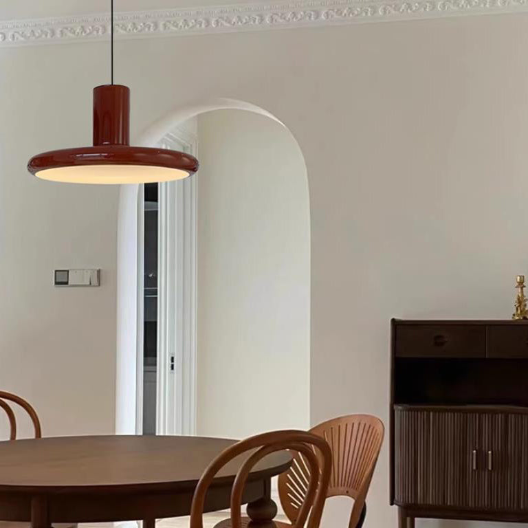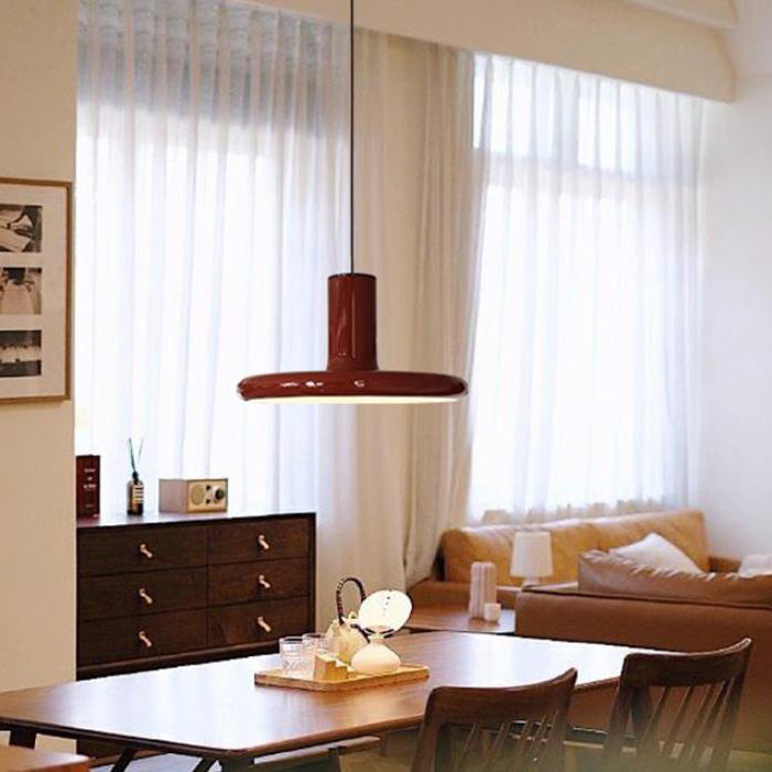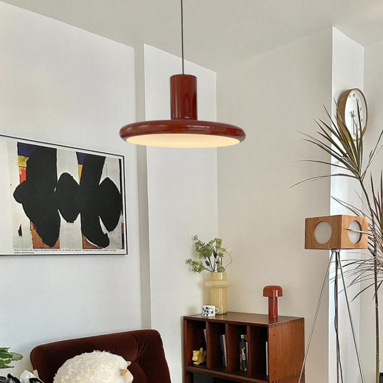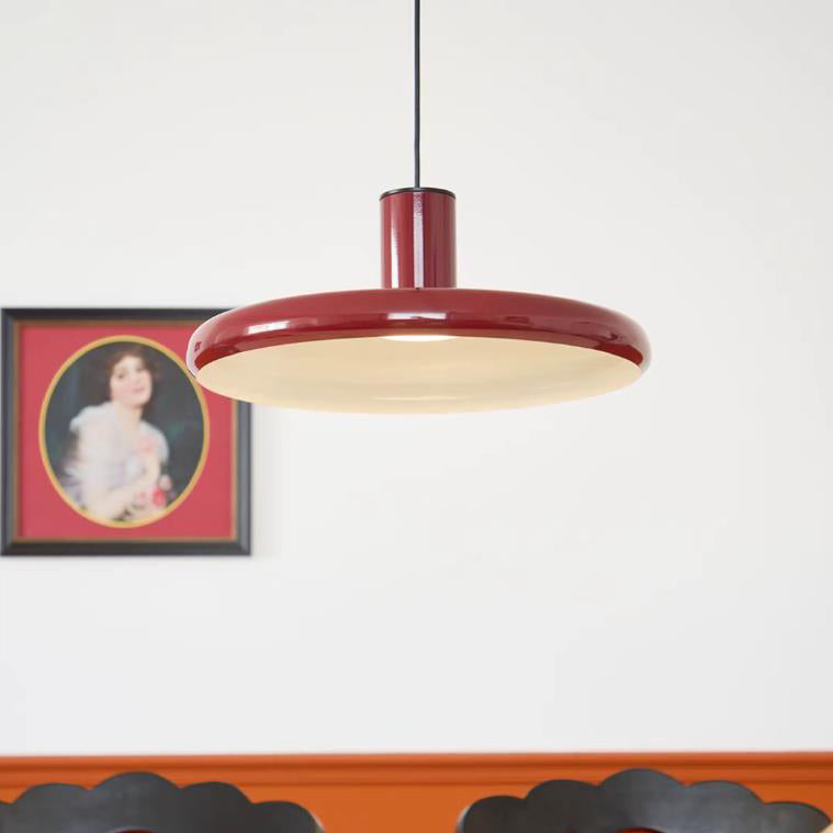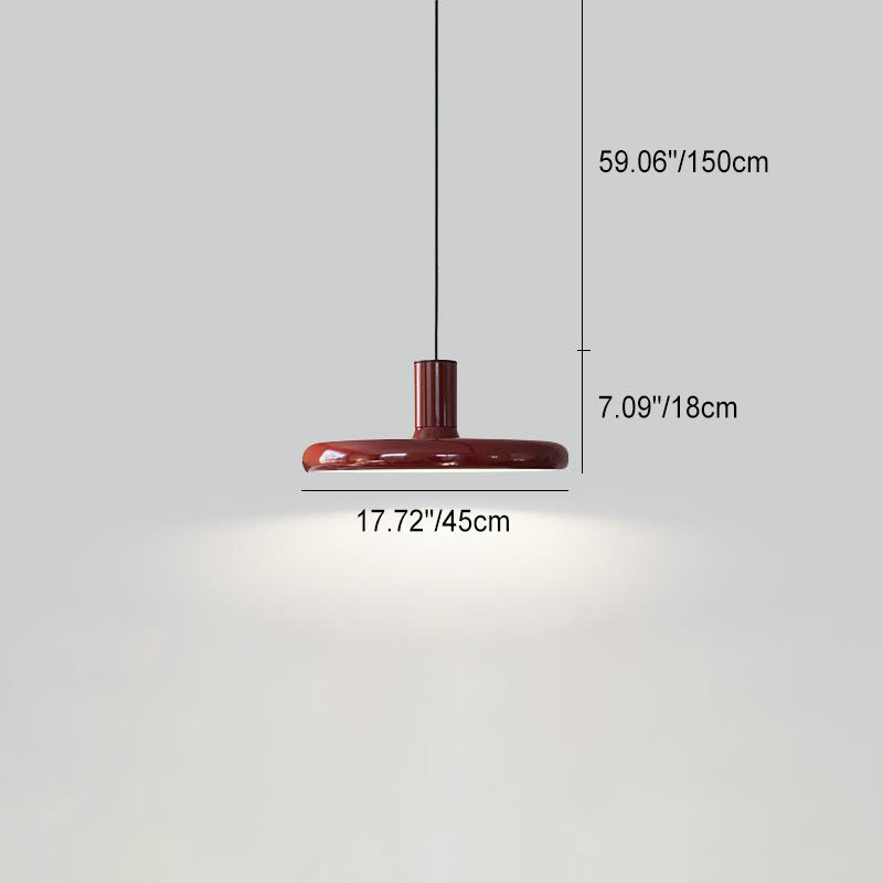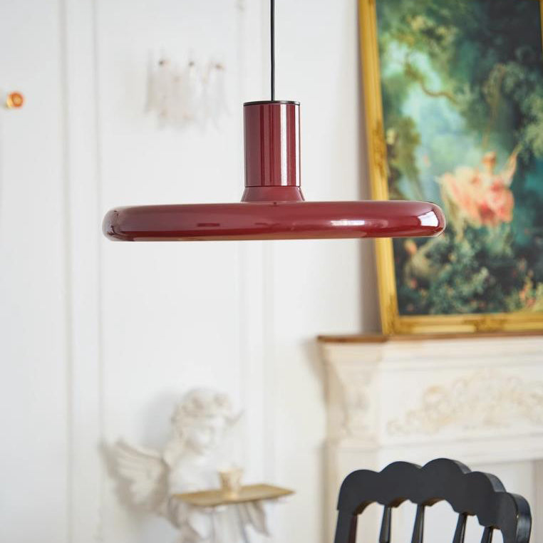Contemporary Simplicity Red Iron Flying Saucer Disc Shade 1-Light Pendant Light For Bedroom