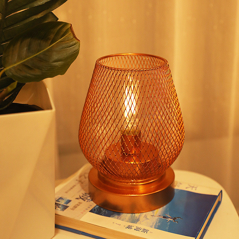 Contemporary Simplicity Rose Iron Mesh Cup Shade LED Table Lamp For Bedroom