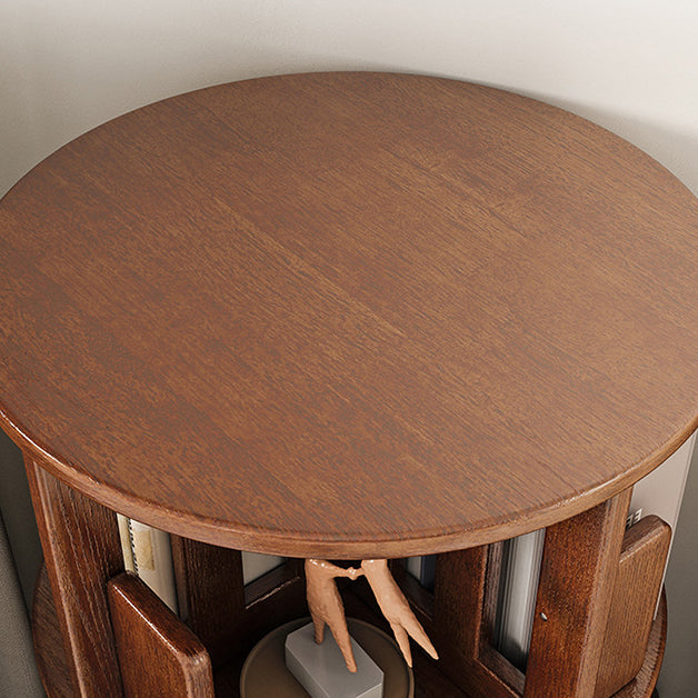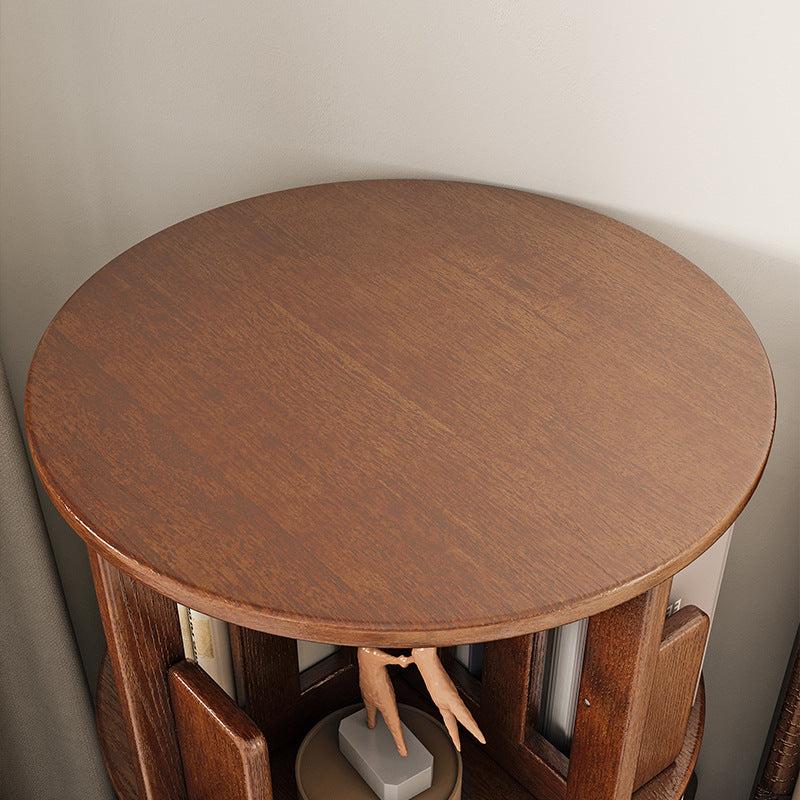 Contemporary Simplicity Round Square Storage Rotatable Bookshelf Solid Wood Hardware Nightstand 1 - Drawer For Bedroom