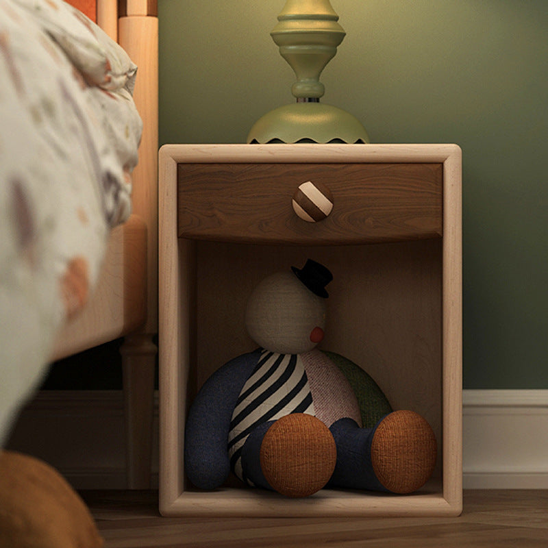 Contemporary Simplicity Square Cube Solid Wood Hardware Nightstand 1 - Drawer For Bedroom