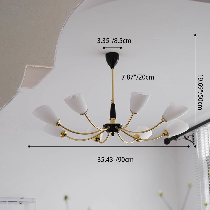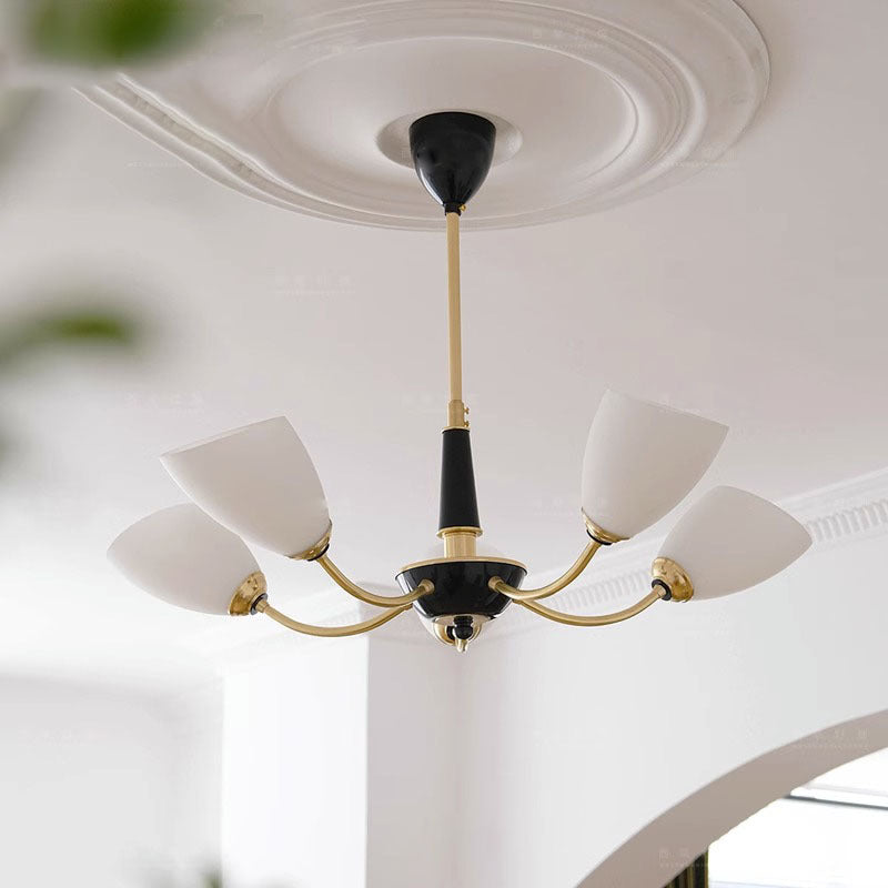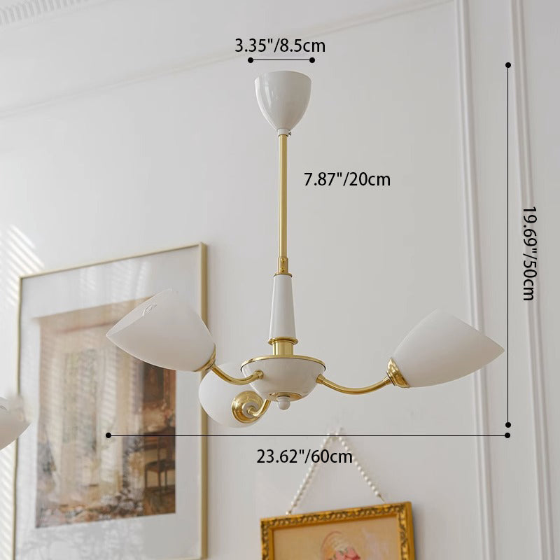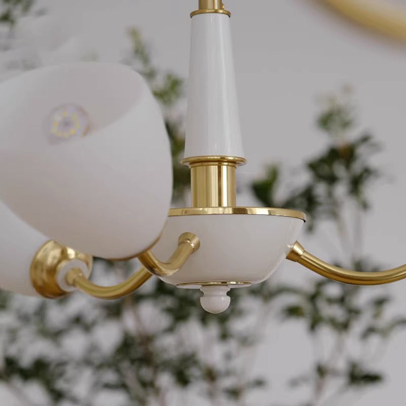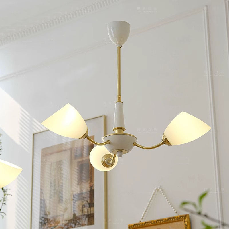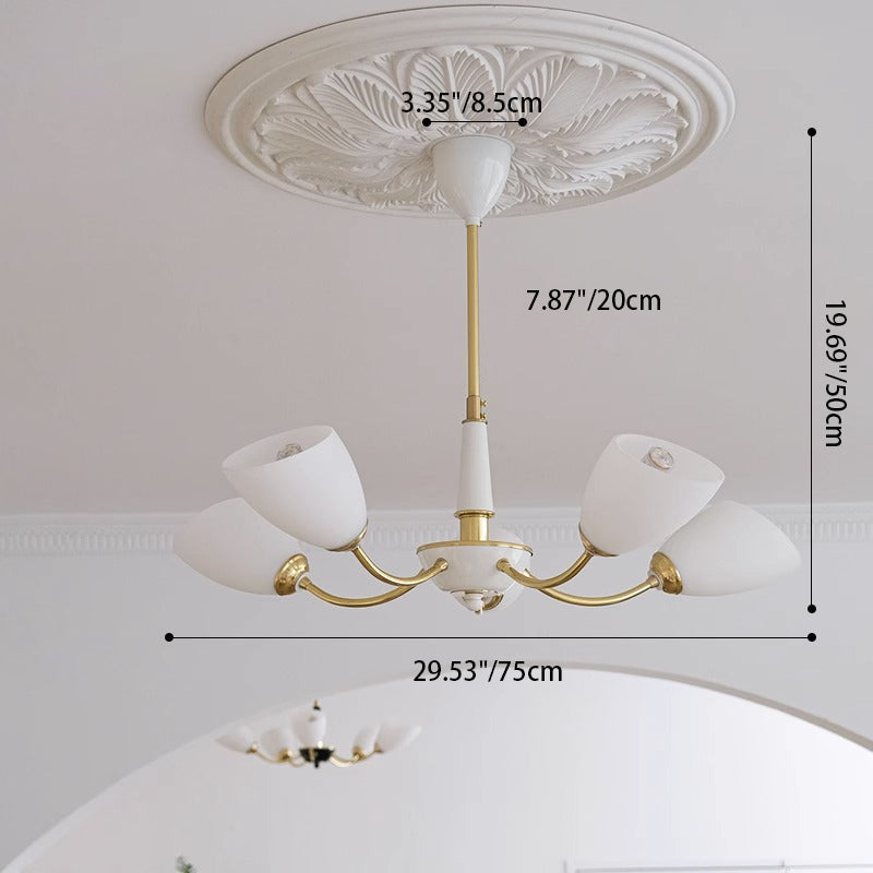 Contemporary Vintage Cream Branch Flower Brass Glass 3/5/8 Light Chandelier For Living Room