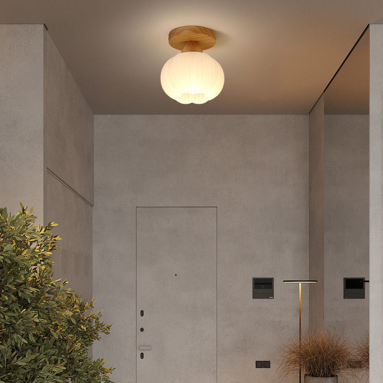 Contemporary Vintage Flower Wood Acrylic 1-Light Semi-Flush Mount Ceiling Light For Living Room