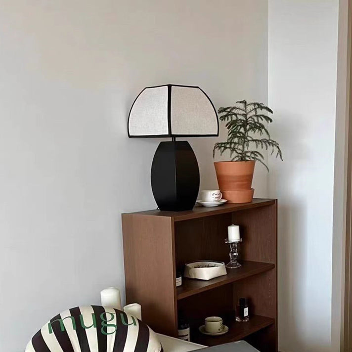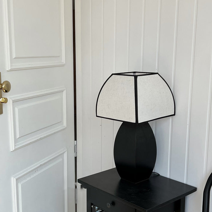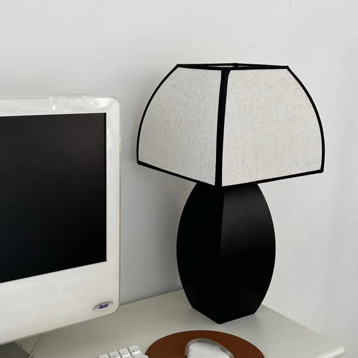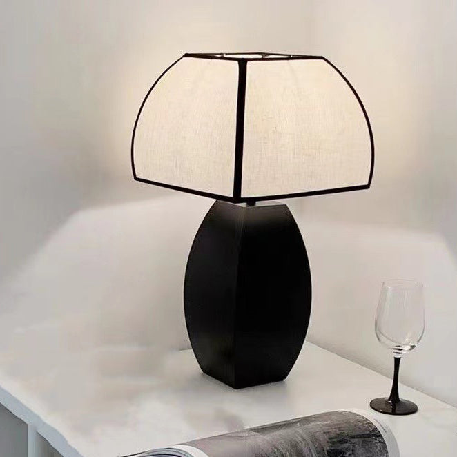 Contemporary Vintage Quadrilateral Column Iron Fabric 1-Light Table Lamp For Bedroom