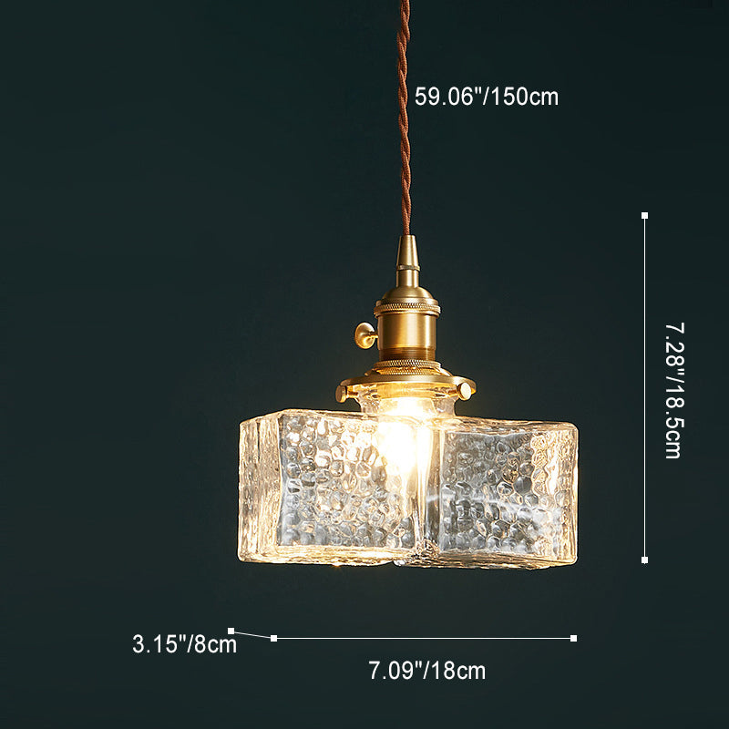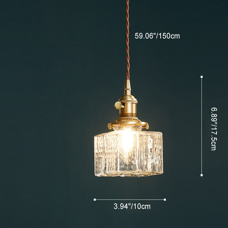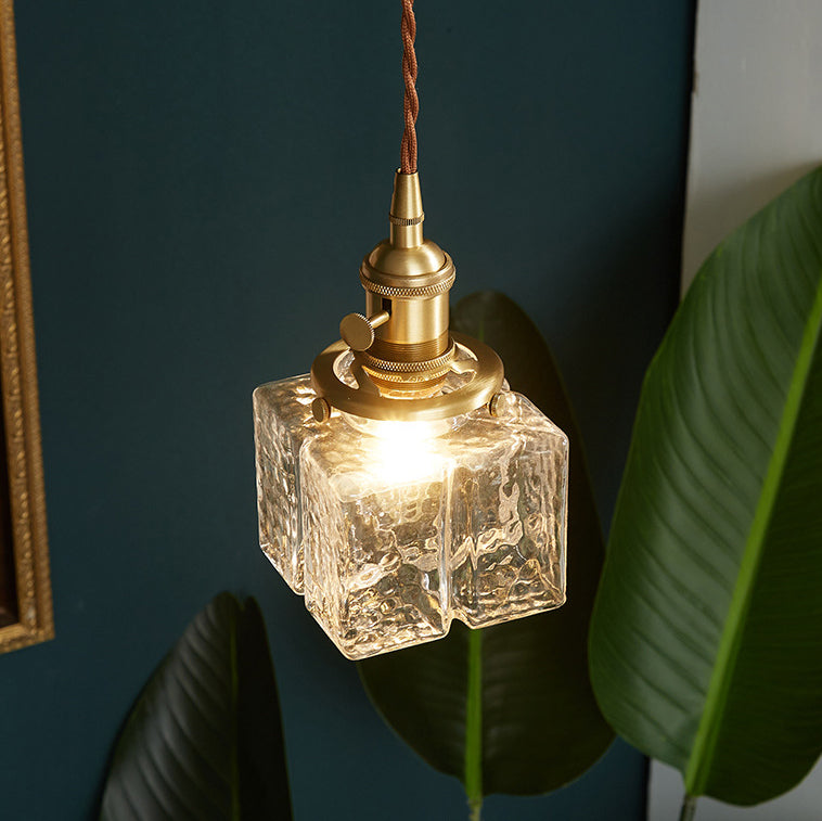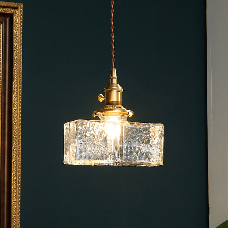 Contemporary Vintage Rectangular Square Draped Glass Brass 1-Light Pendant Light For Living Room
