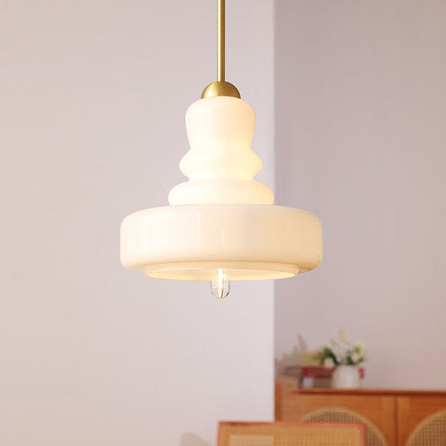 Contemporary Vintage Round Gourd Iron Copper Glass 1-Light Pendant Light For Living Room
