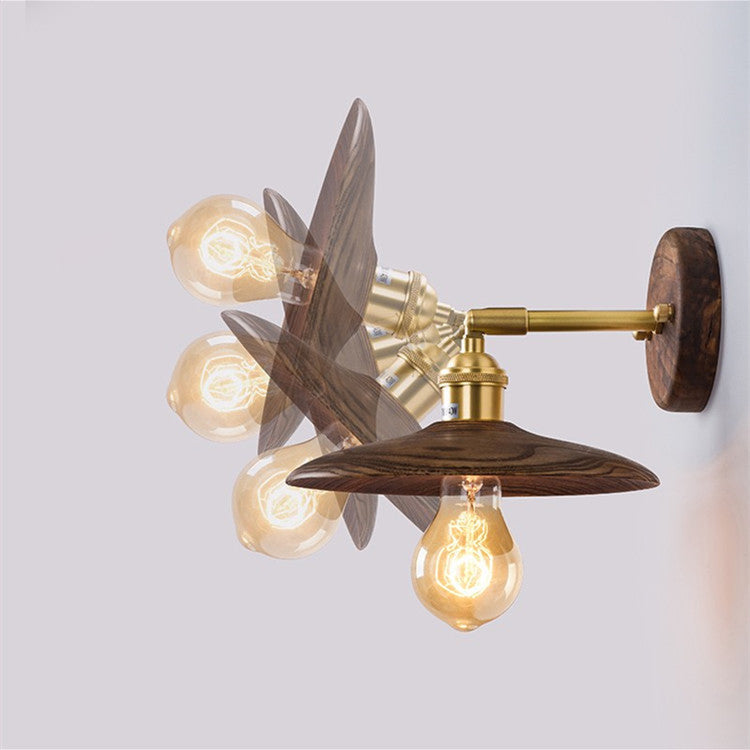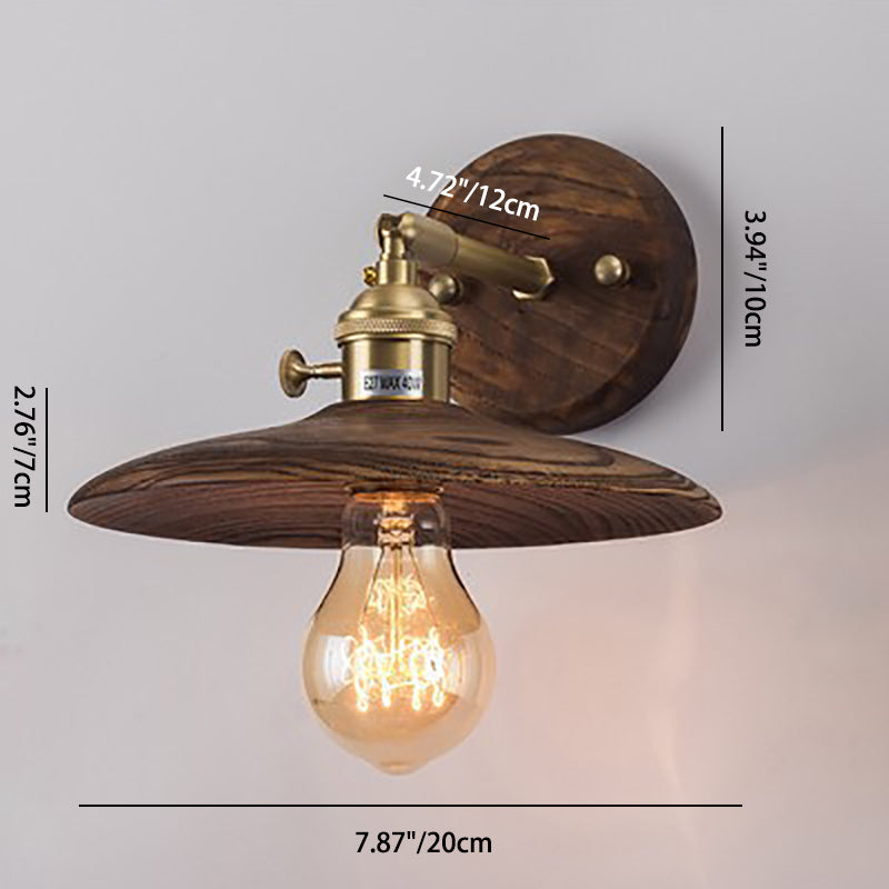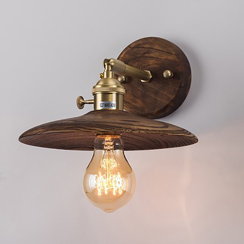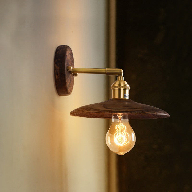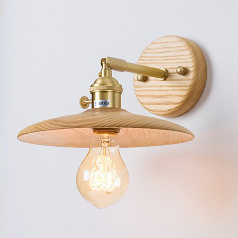 Contemporary Vintage Round Wood Grain Brass Wood 1-Light Wall Sconce Lamp For Living Room