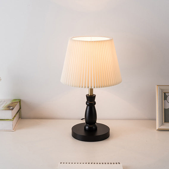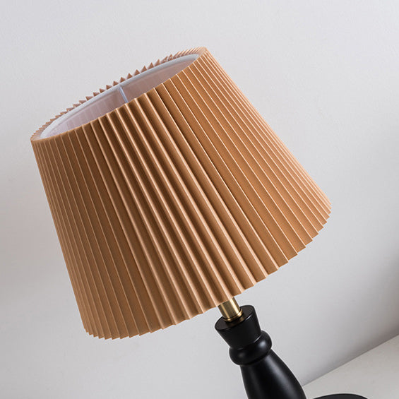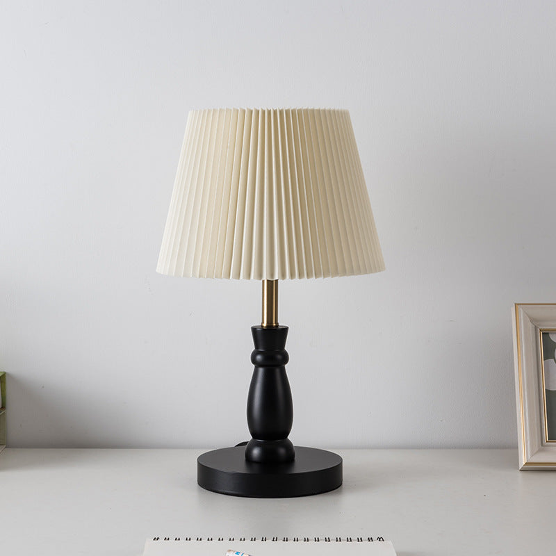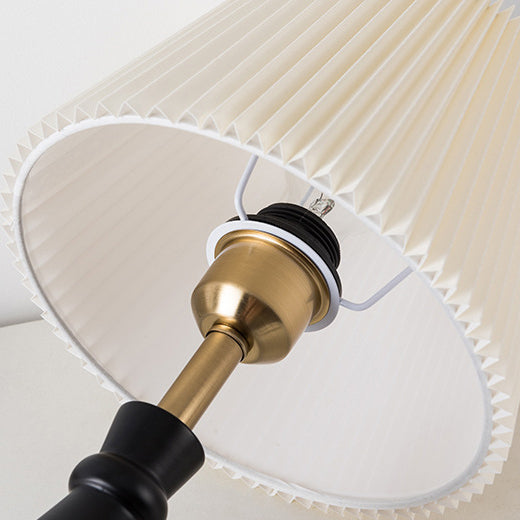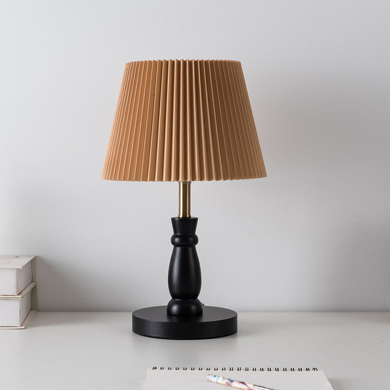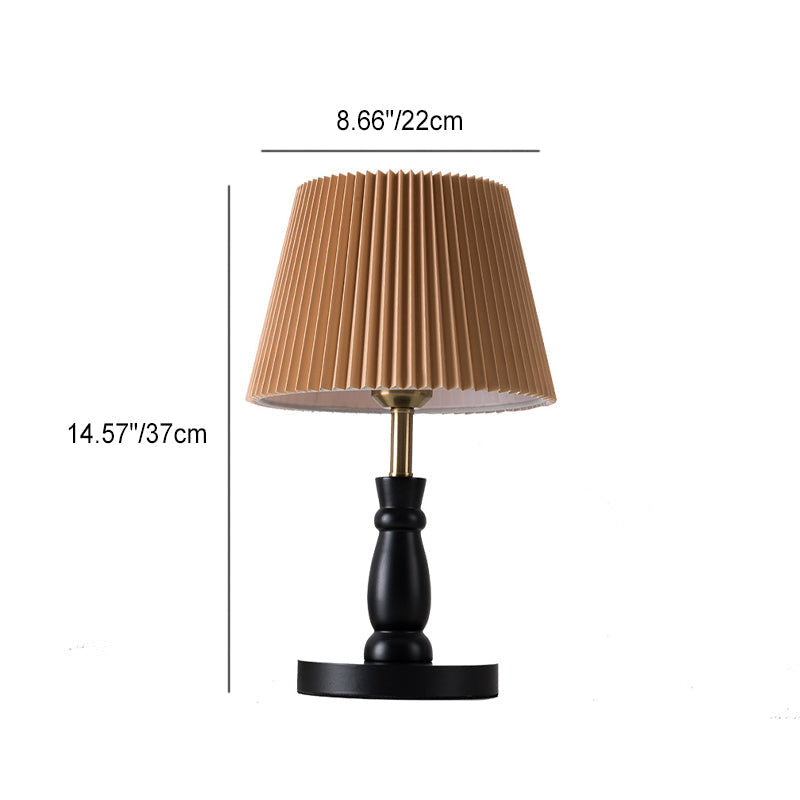 Contemporary Vintage Striped Folding Lampshade Metal Solid Wood Fabric 1-Light Table Lamp For Bedroom