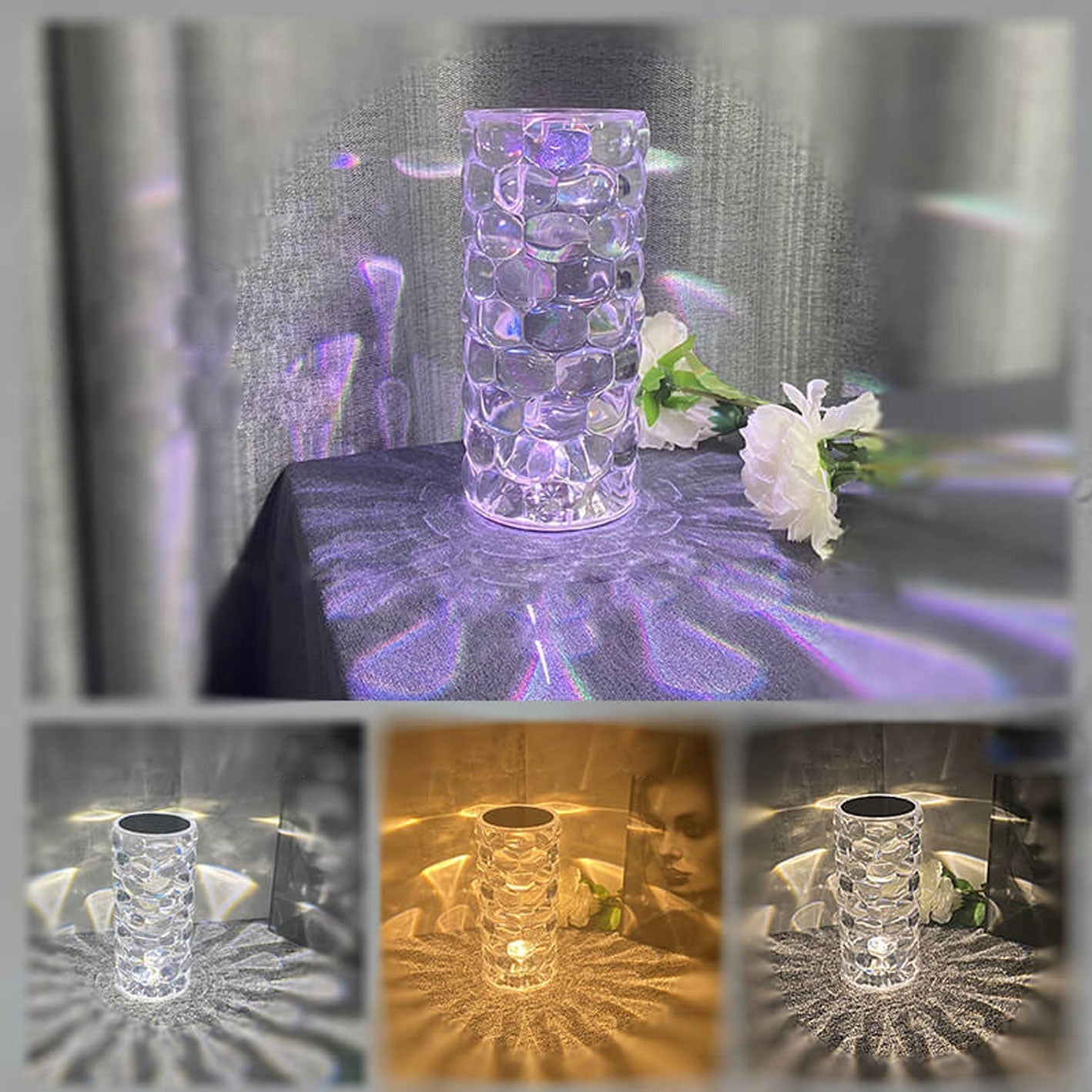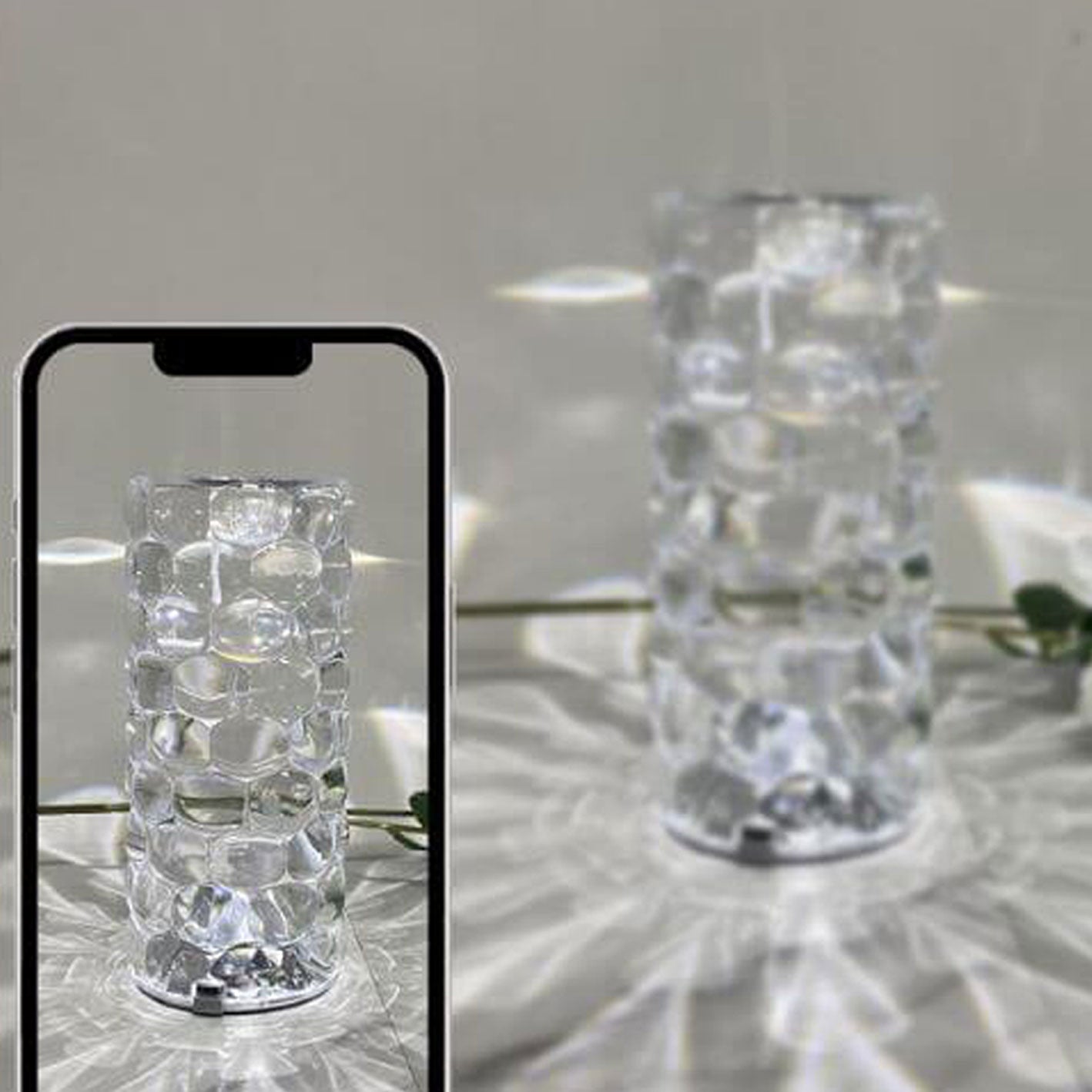 Creative Crystal Diamond Water Drop Rechargeable Touch LED Night Light Table Lamp