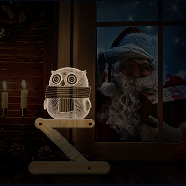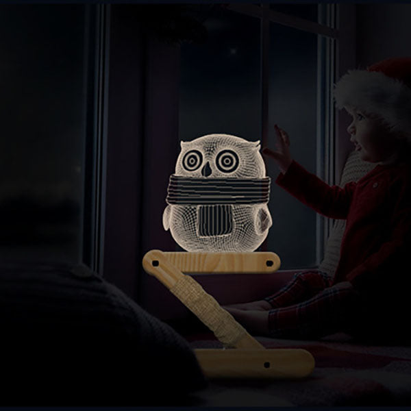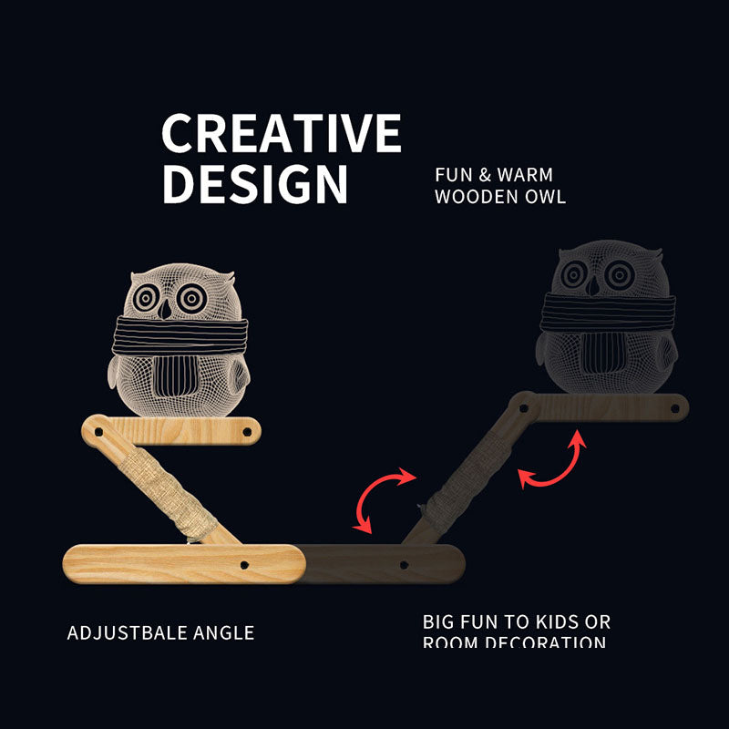 Creative Owls Acrylic Solid Wood Base LED Night Light Table Lamp