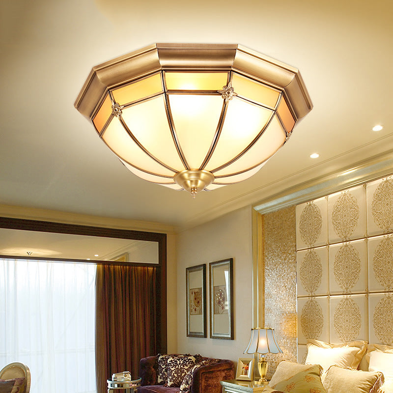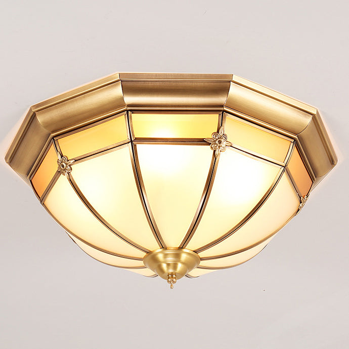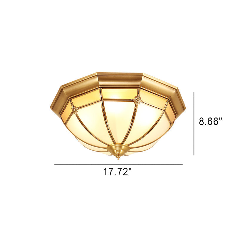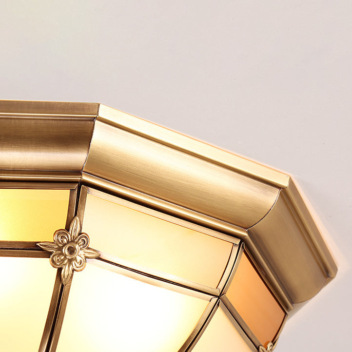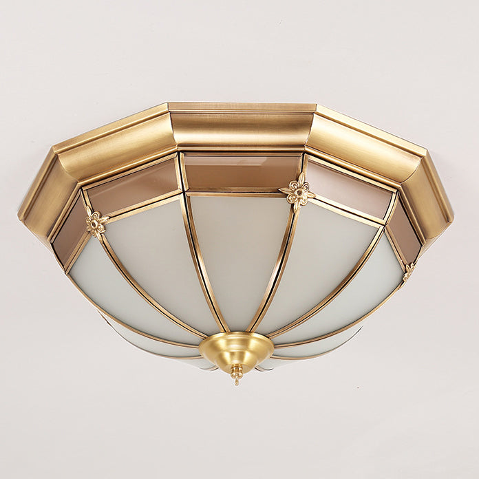 European Brass Glass Round Flower Pattern 3/4/6 Light Flush Mount Ceiling Light