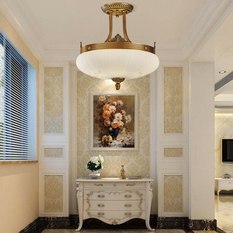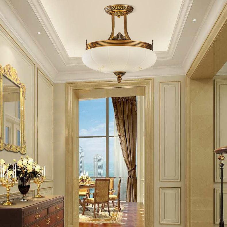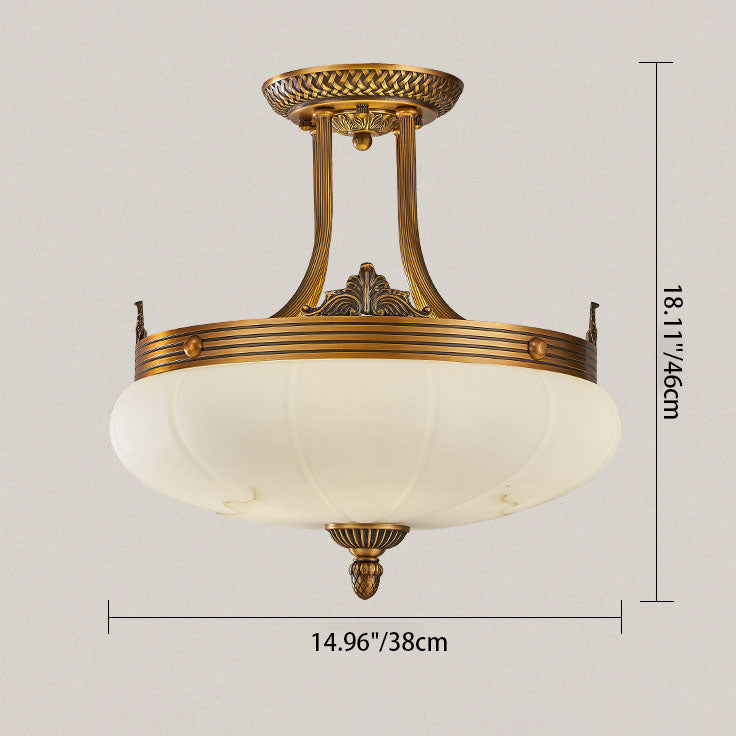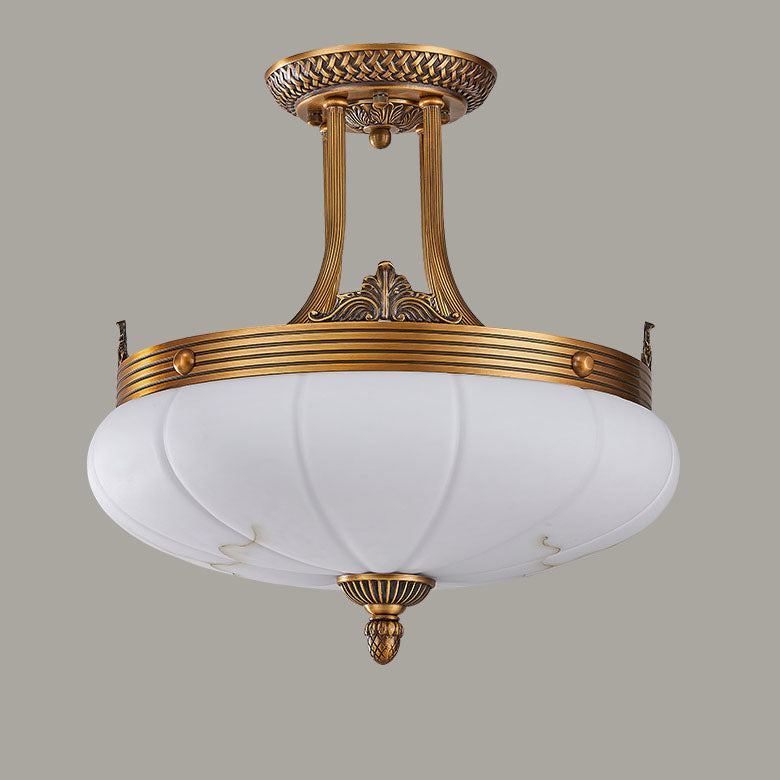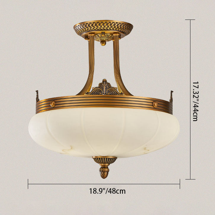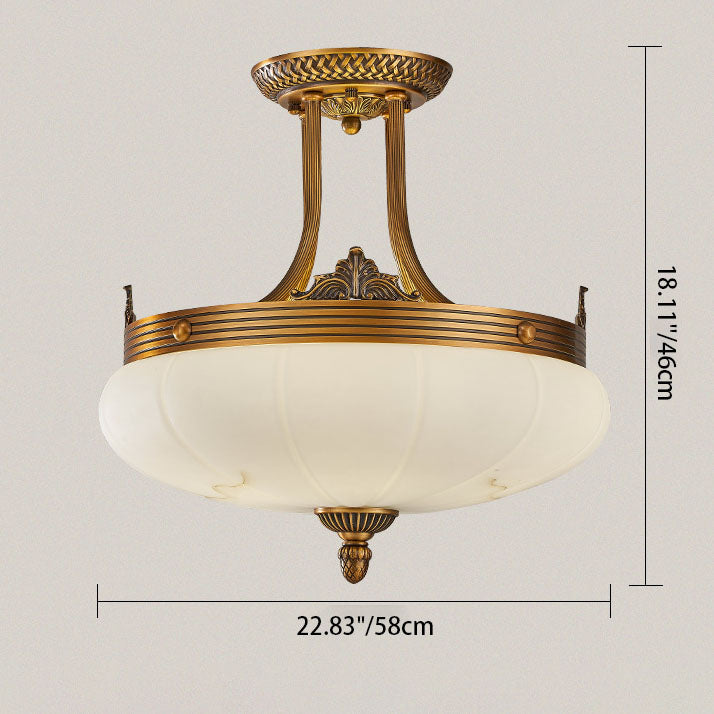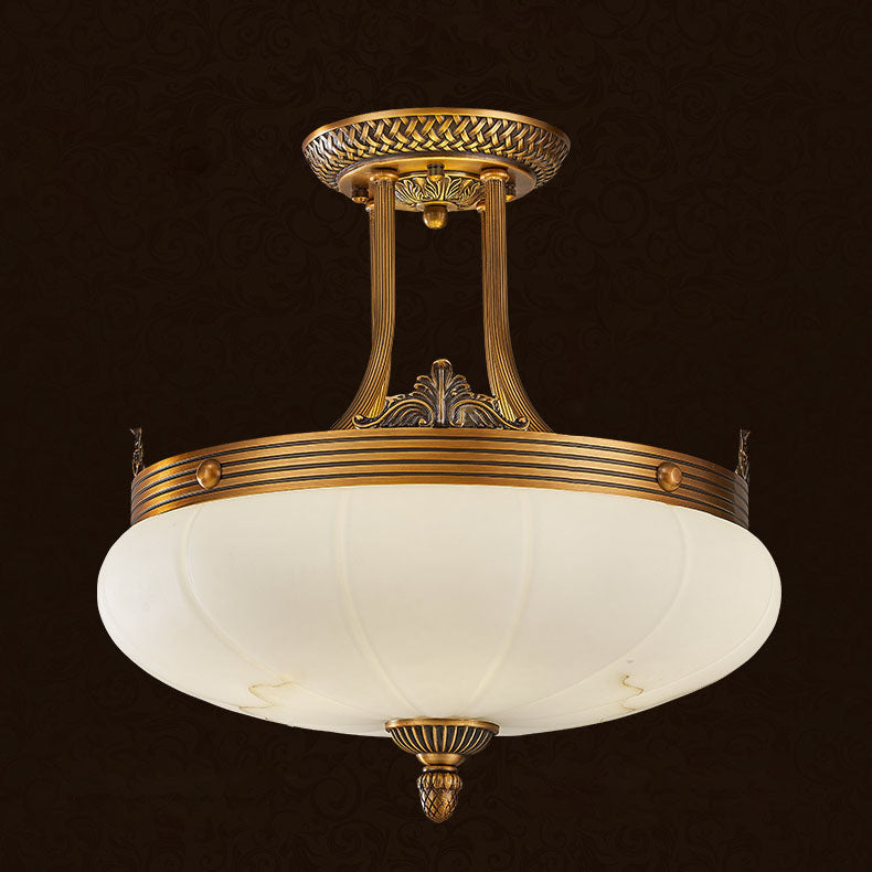 European Golden Glamour Copper Glass Round 4/5/6-Light Semi-Flush Mount Ceiling Light