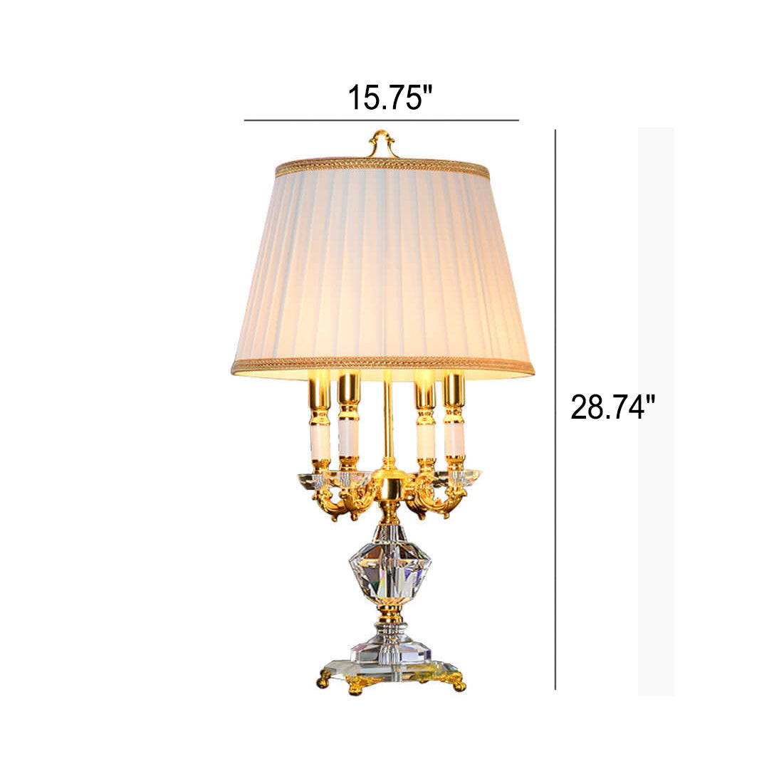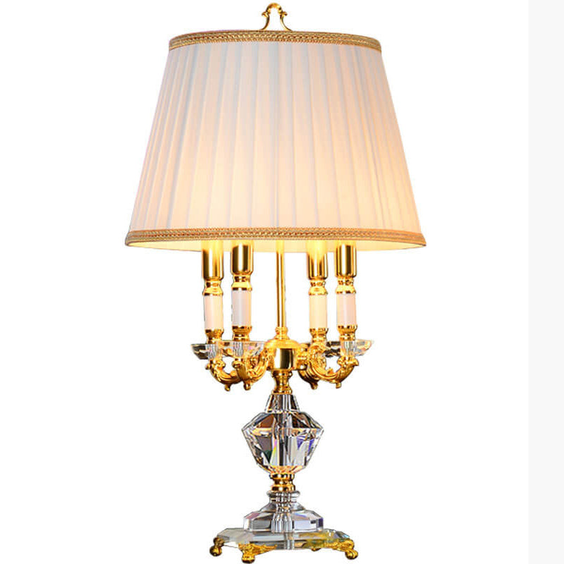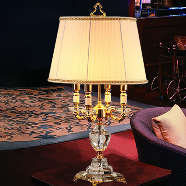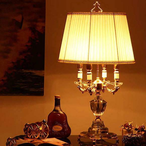 European Luxury Fabric Candle Holder with Crystal Base 4-Light Table Lamp