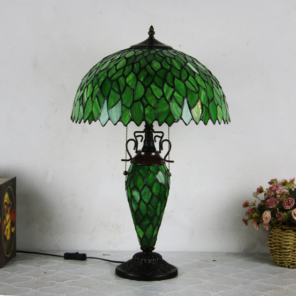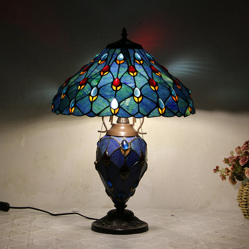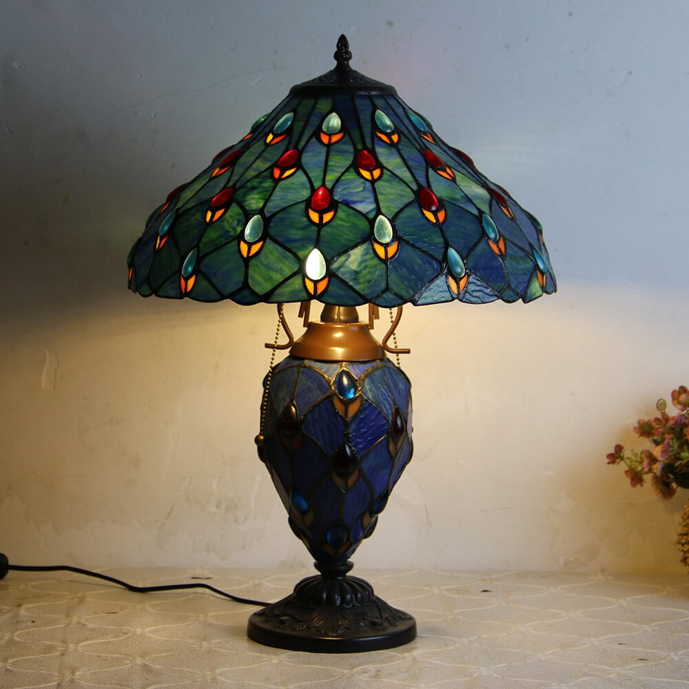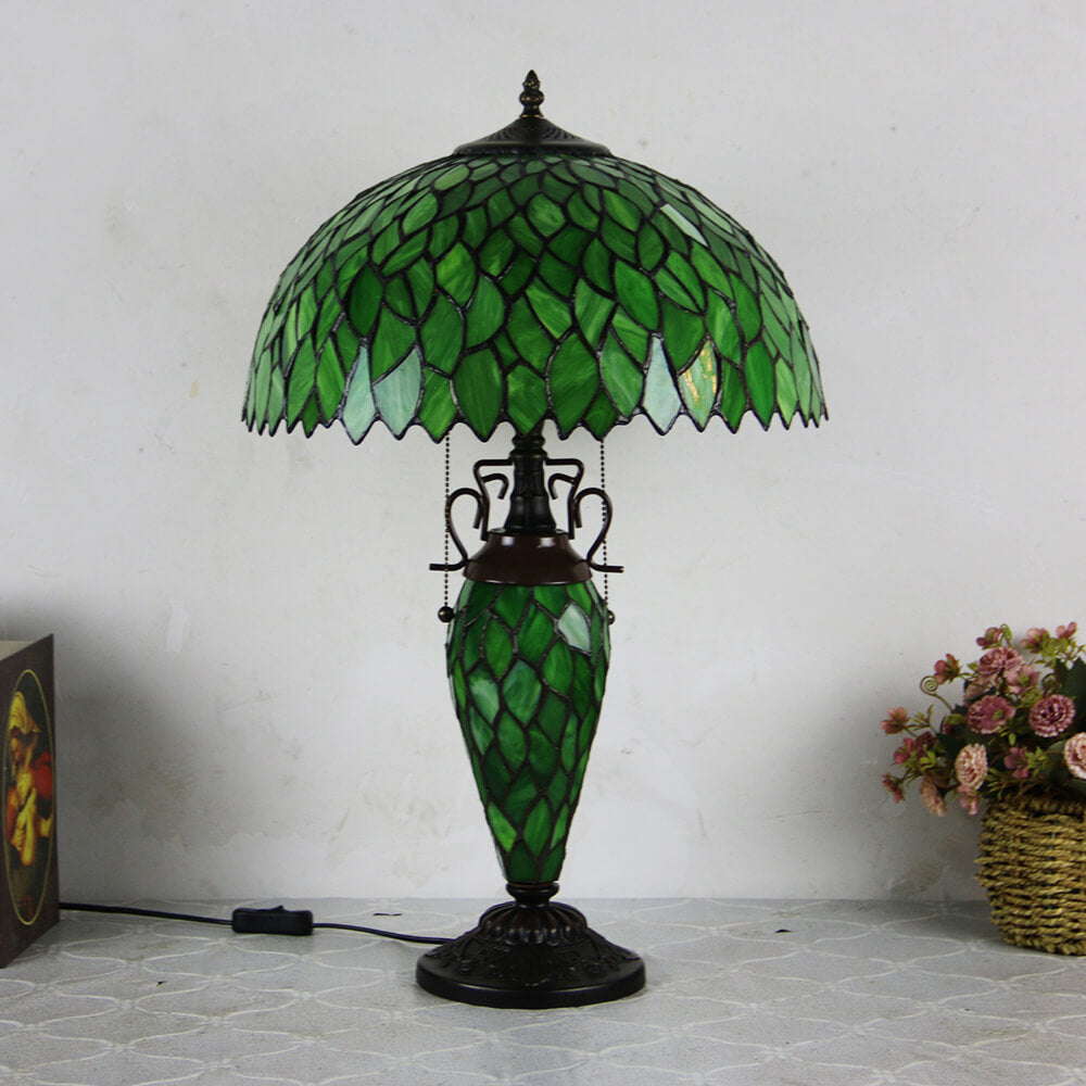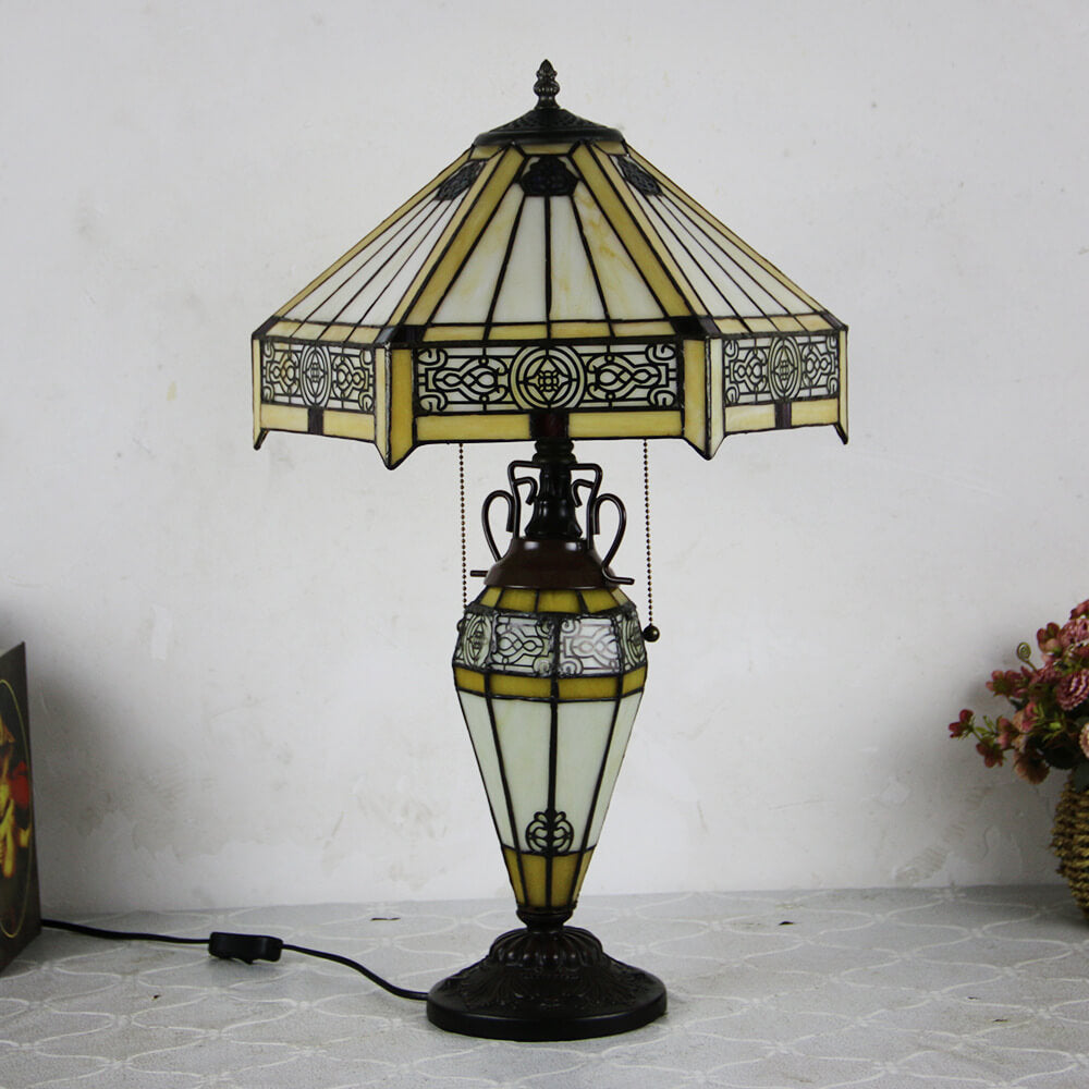 European Tiffany Stained Glass Hexagonal Dome Pull Cord 2-Light Table Lamp