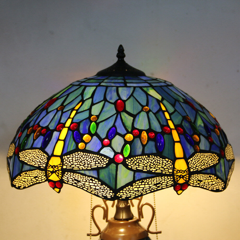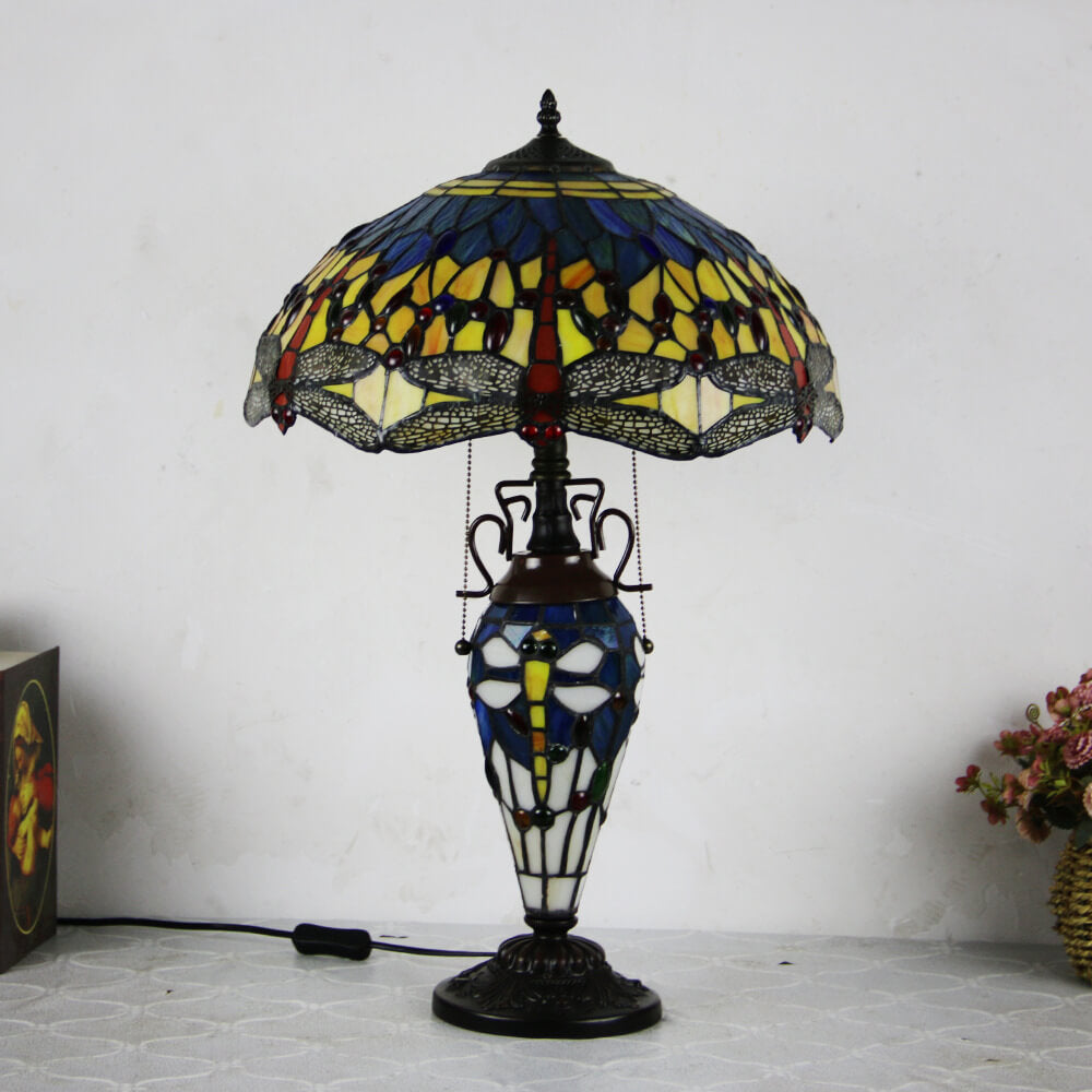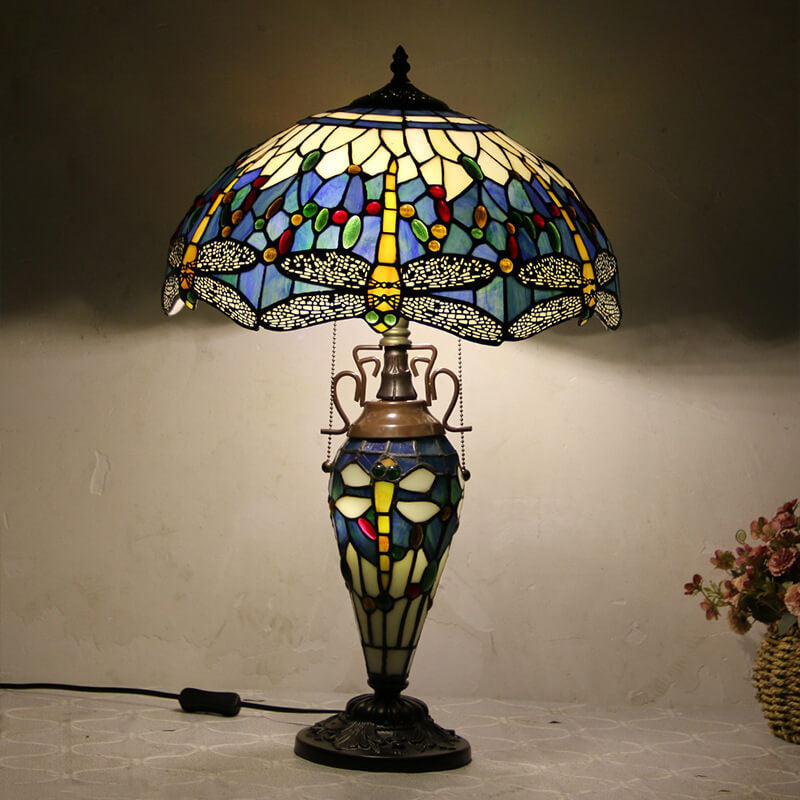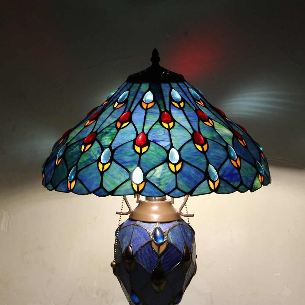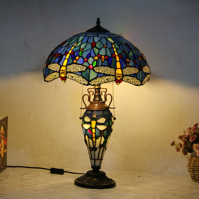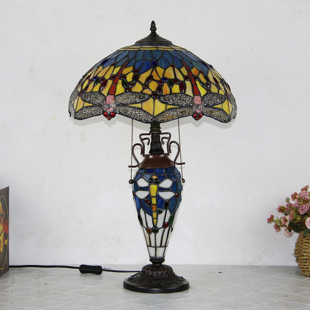 European Tiffany Stained Glass Hexagonal Dome Pull Cord 2-Light Table Lamp