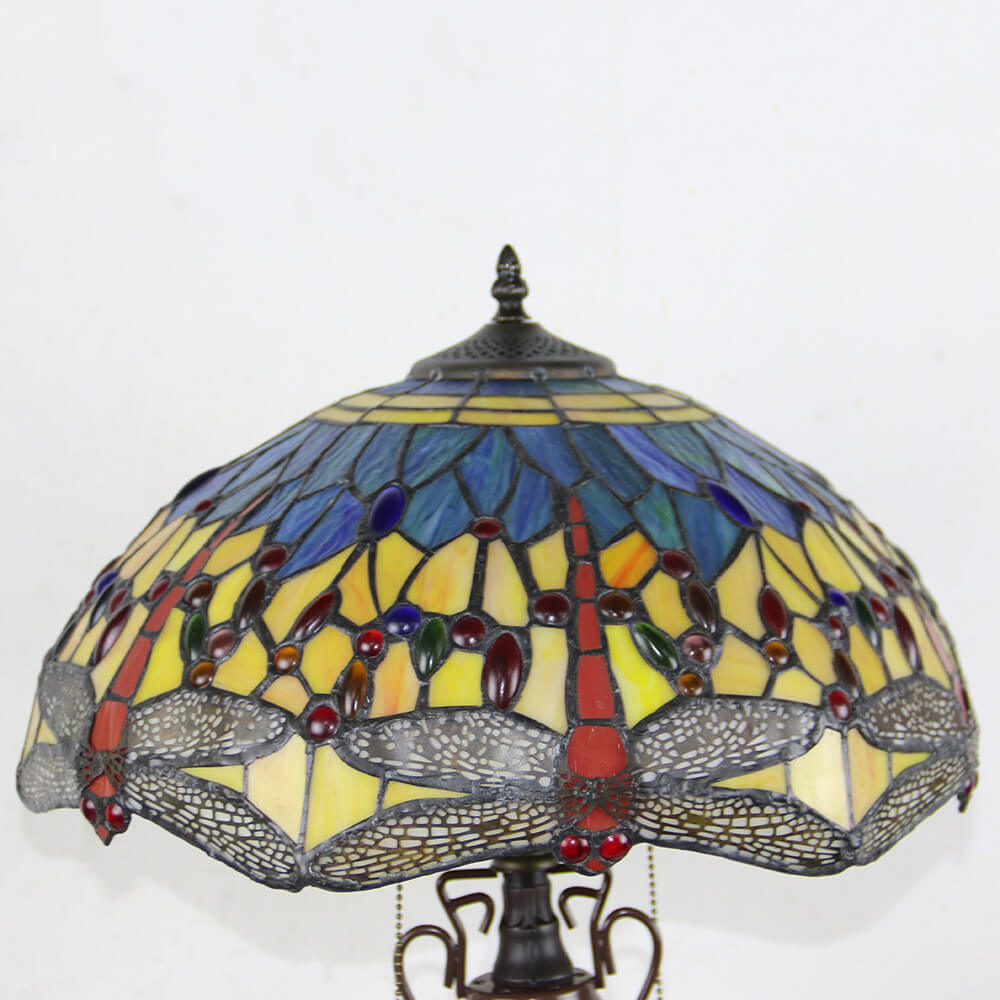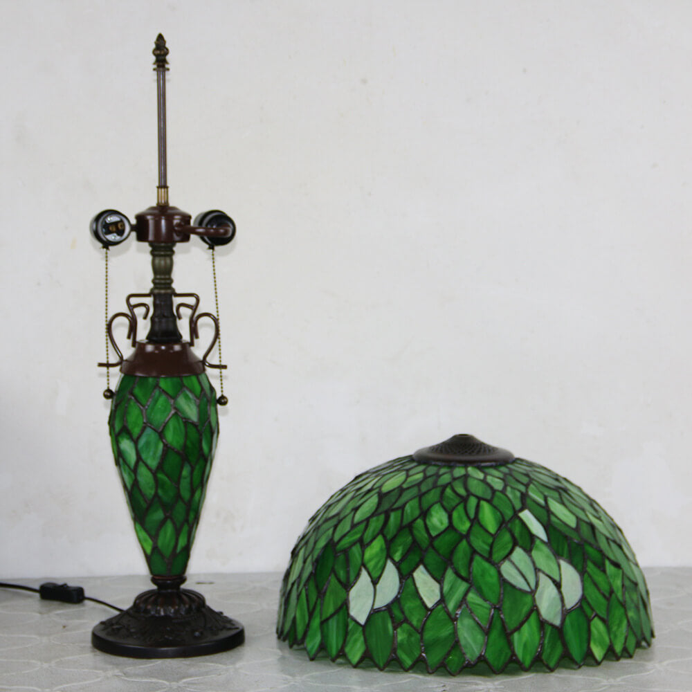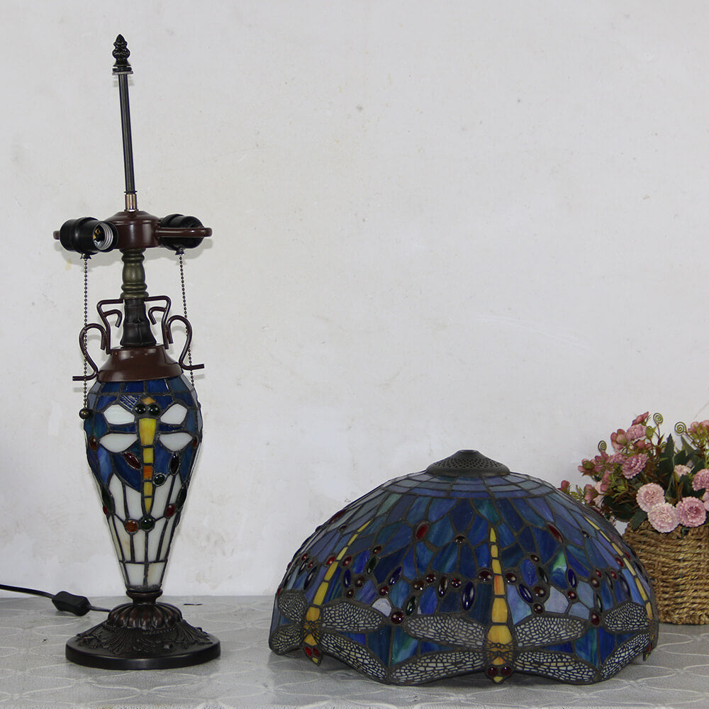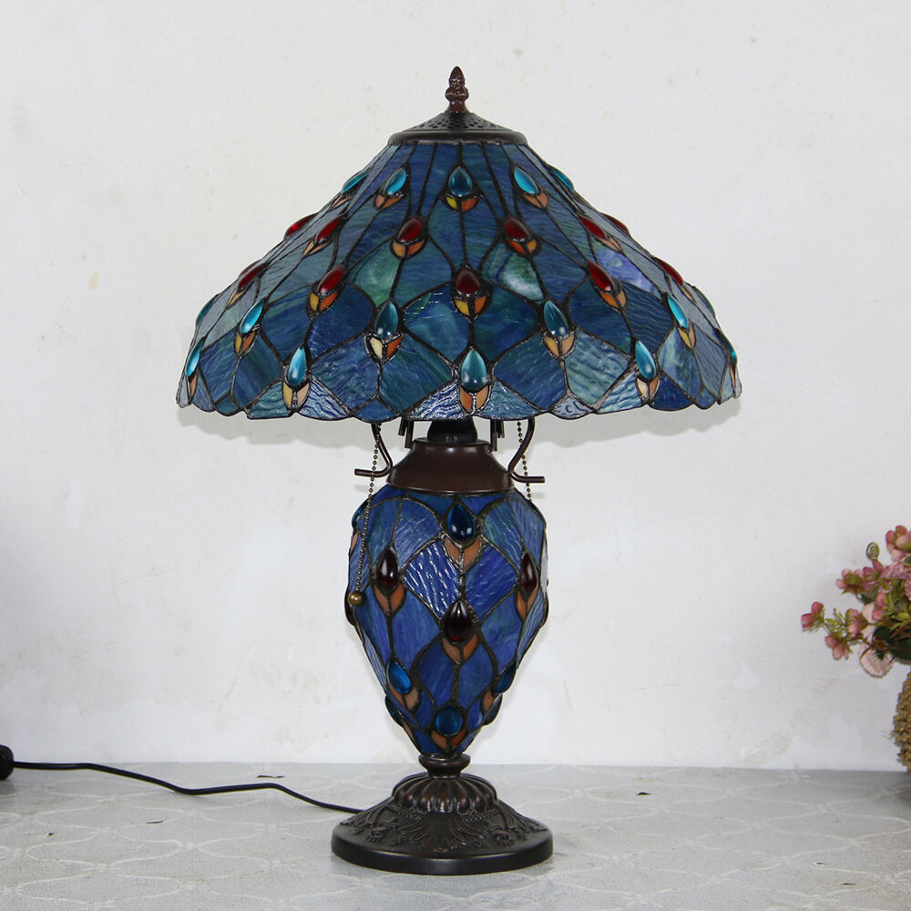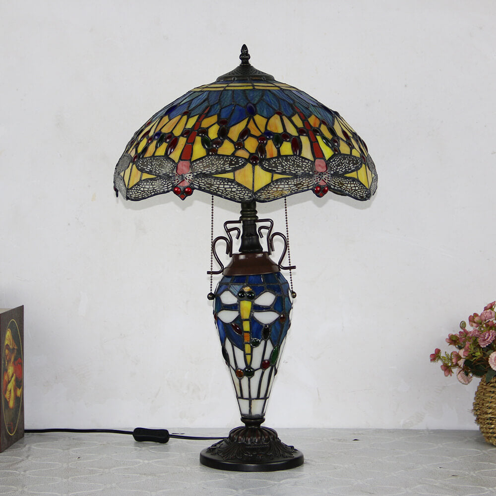 European Tiffany Stained Glass Hexagonal Dome Pull Cord 2-Light Table Lamp