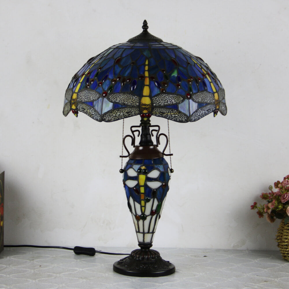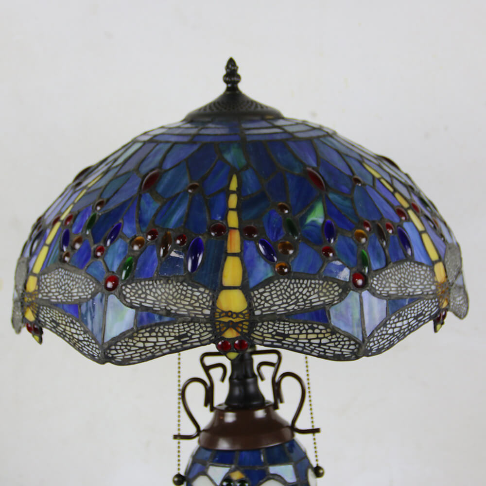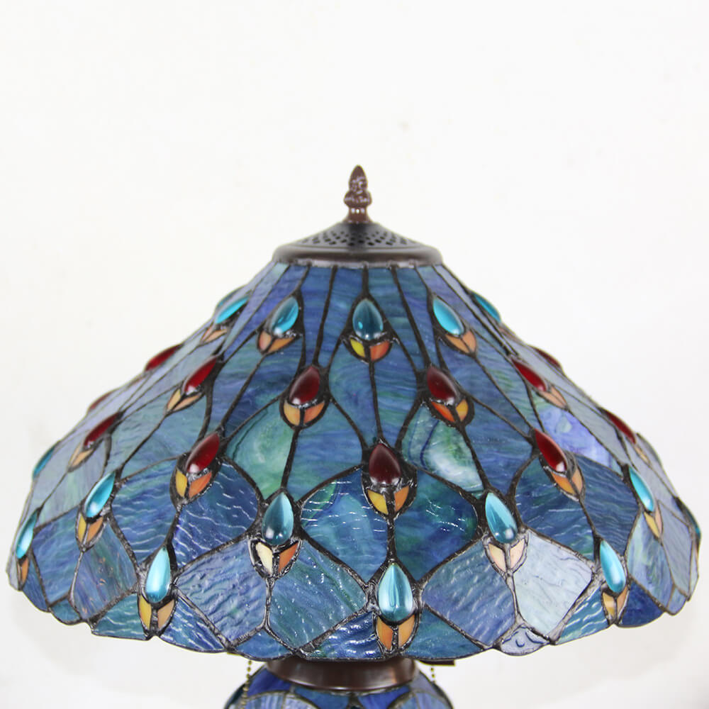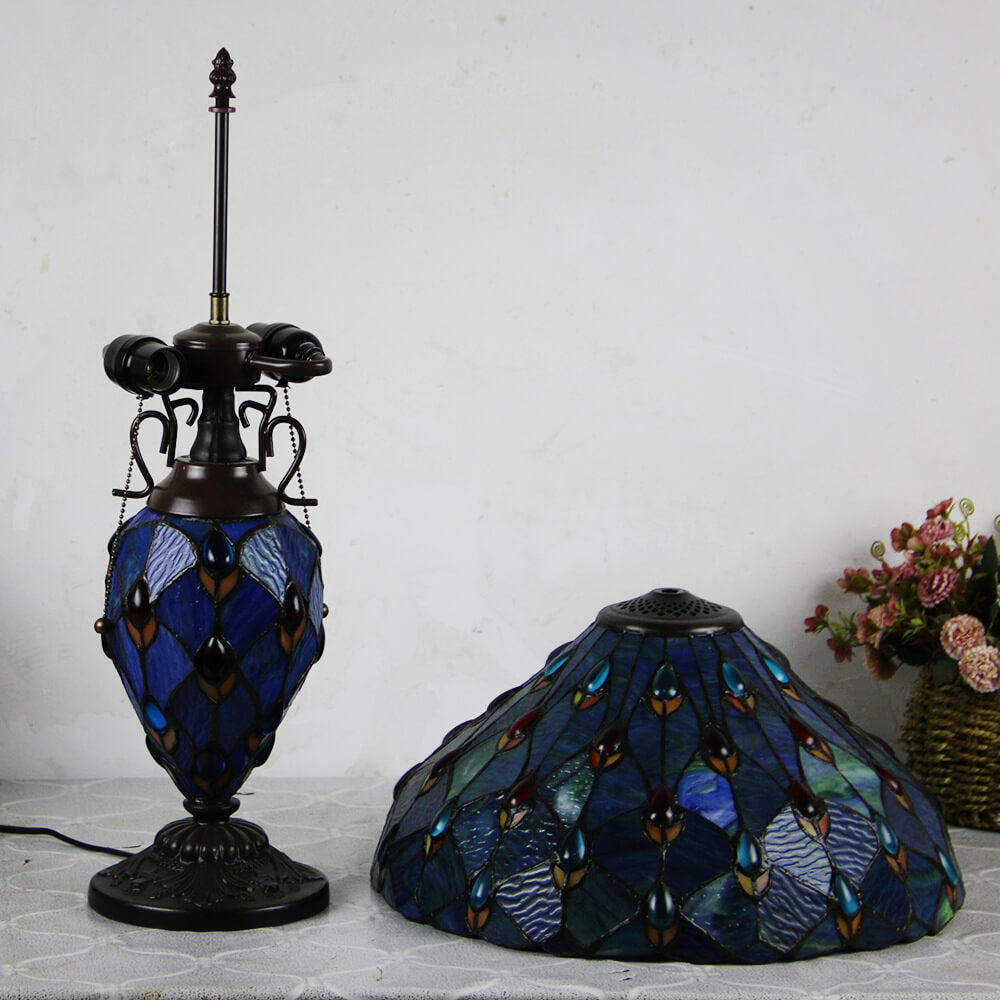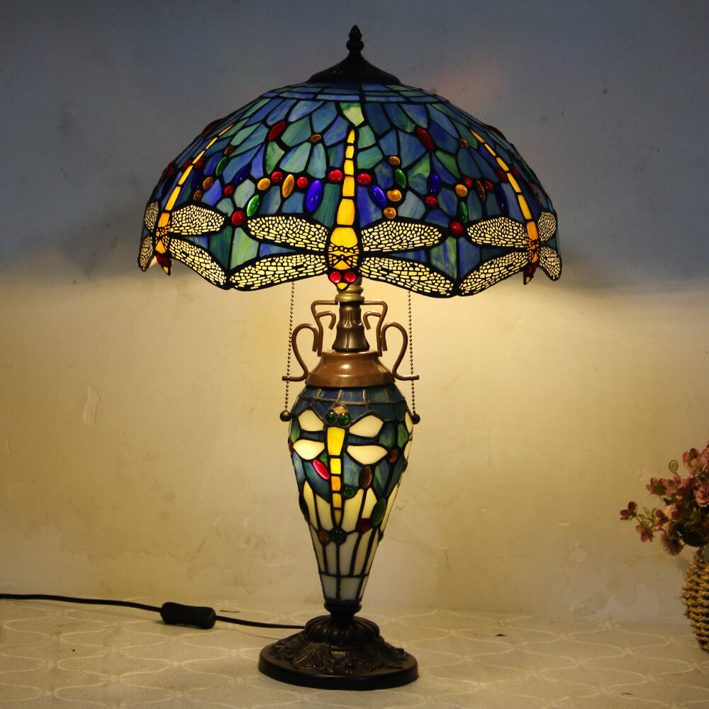 European Tiffany Stained Glass Hexagonal Dome Pull Cord 2-Light Table Lamp