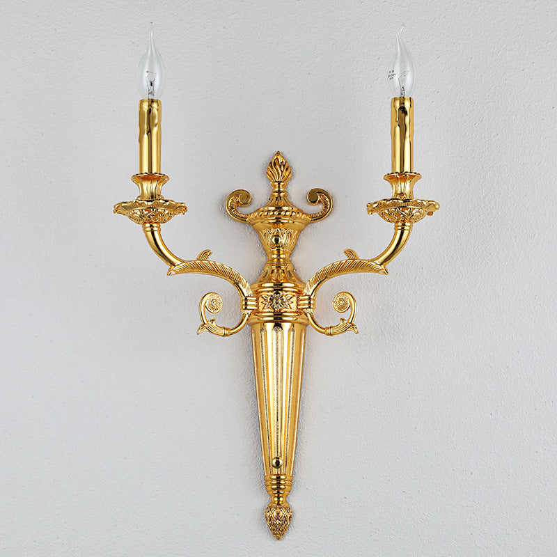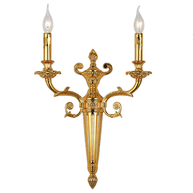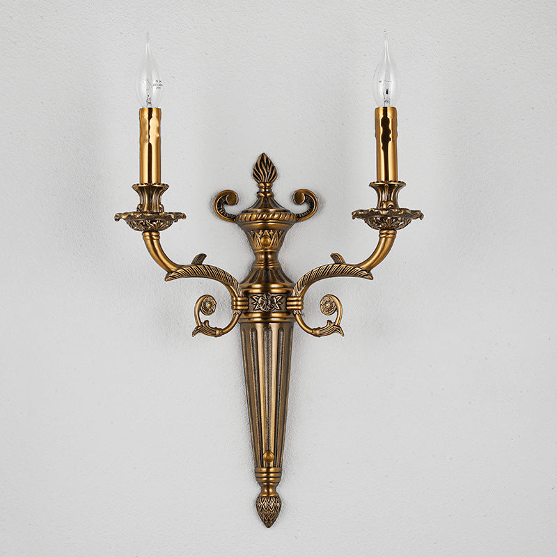 European Vintage Carved Candle Holder Long Arm 2-Light Wall Sconce Lamp