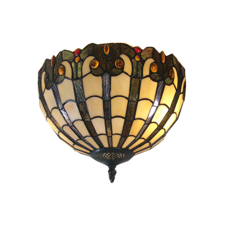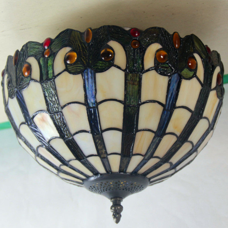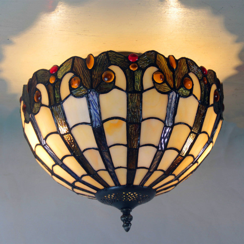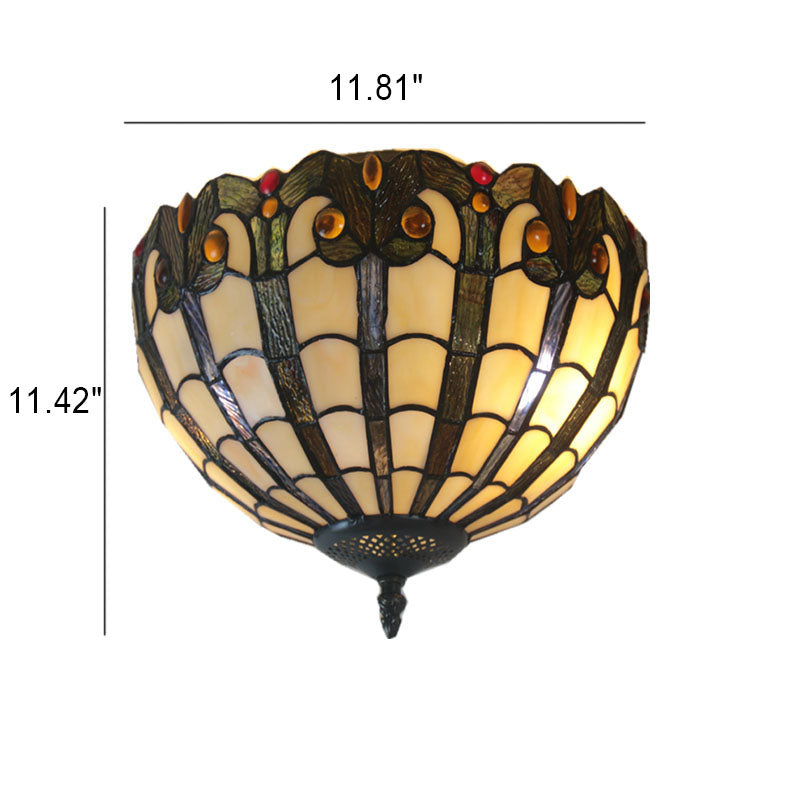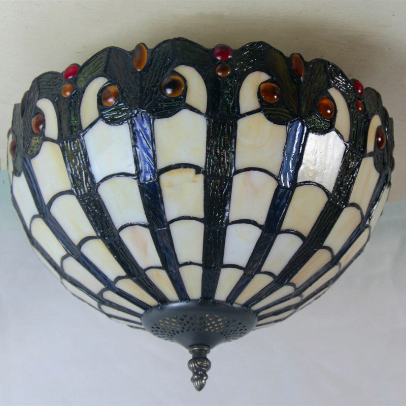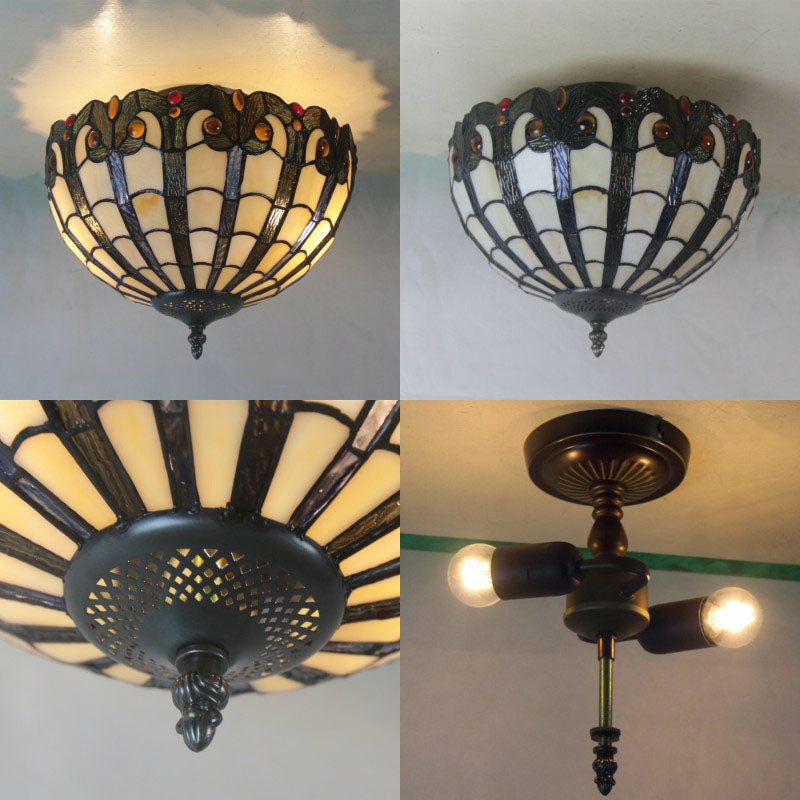 European Vintage Tiffany Iron Glass 2-Light Flush Mount Light
