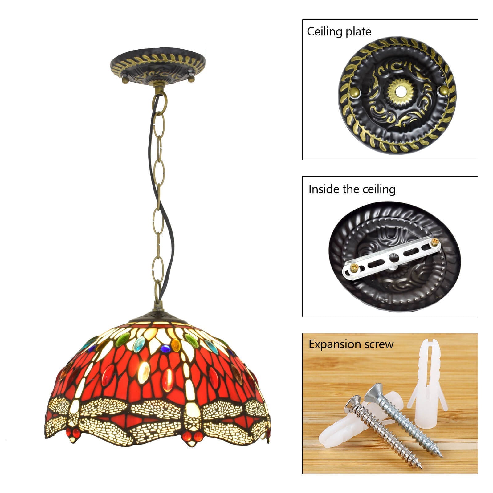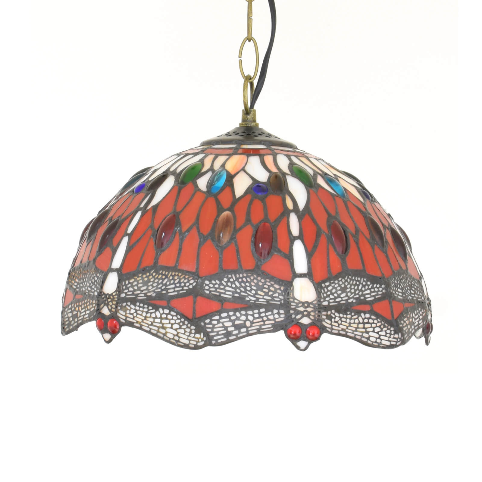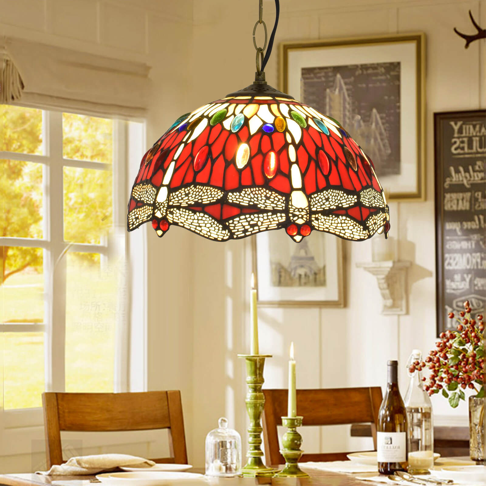 European Vintage Tiffany Red Dragonfly Iron Glass 1-Light Pendant Light