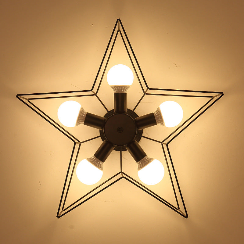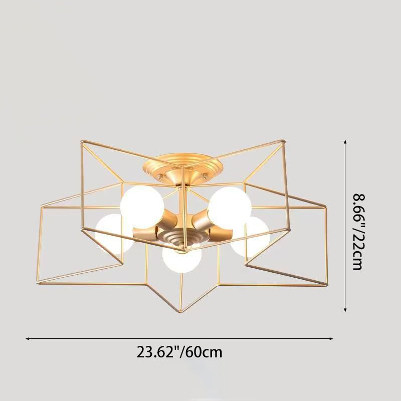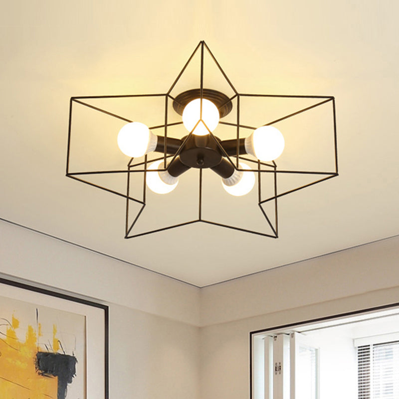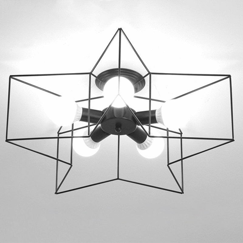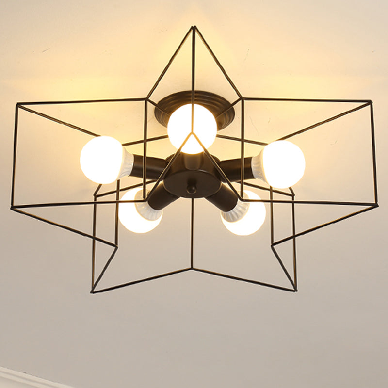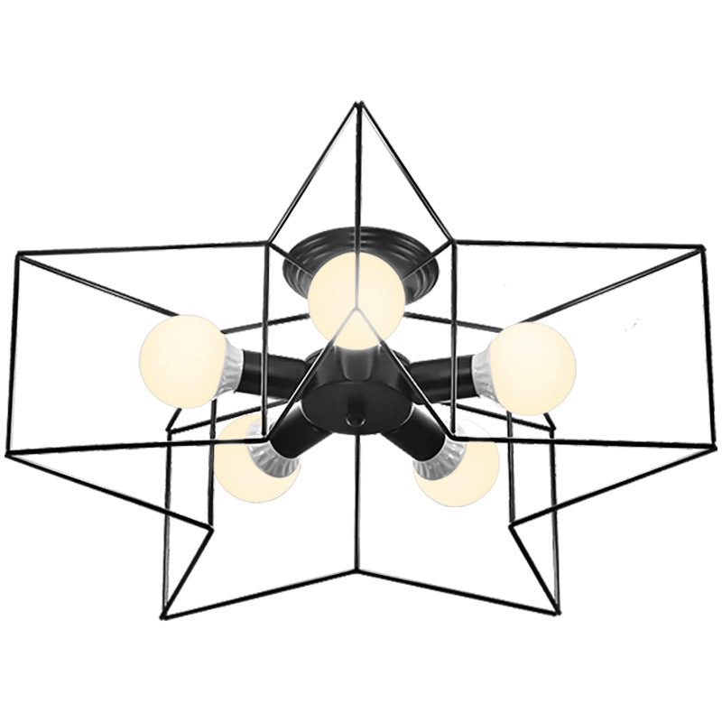 Contemporary Creative Pentagram Iron 5-Light Semi-Flush Mount Ceiling Light For Living Room