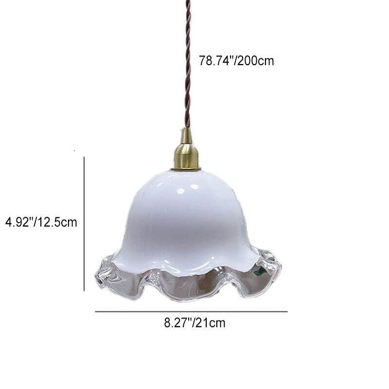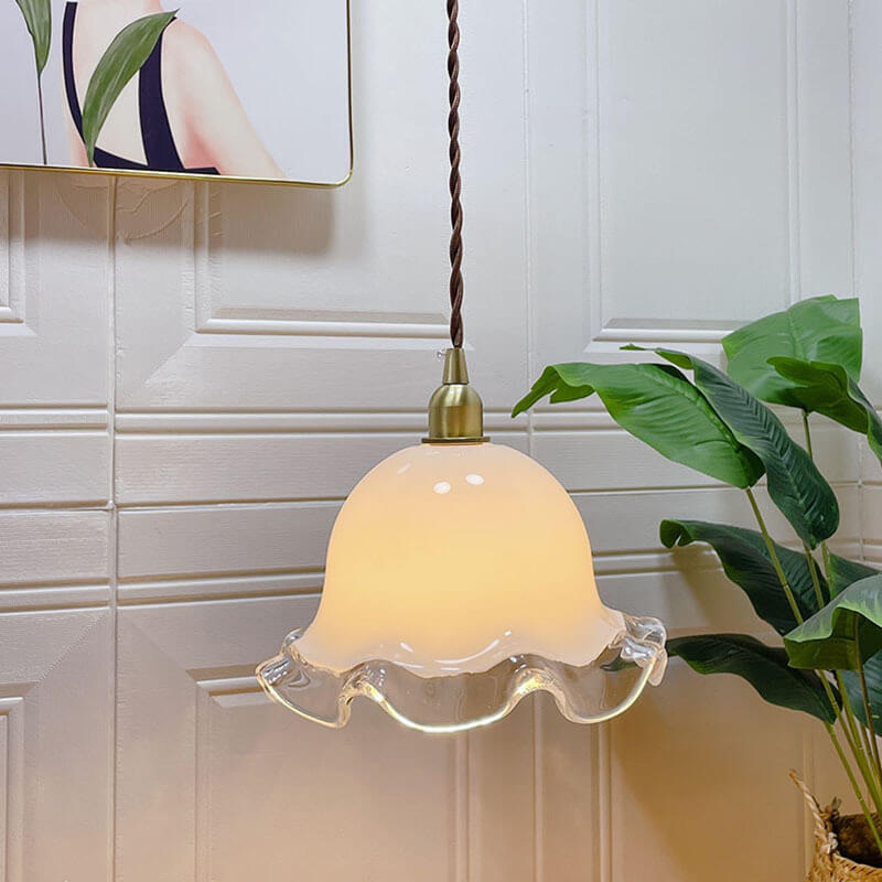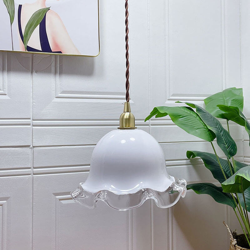 French Modern Minimalist Floral Brass Glass 1-Light Pendant Light