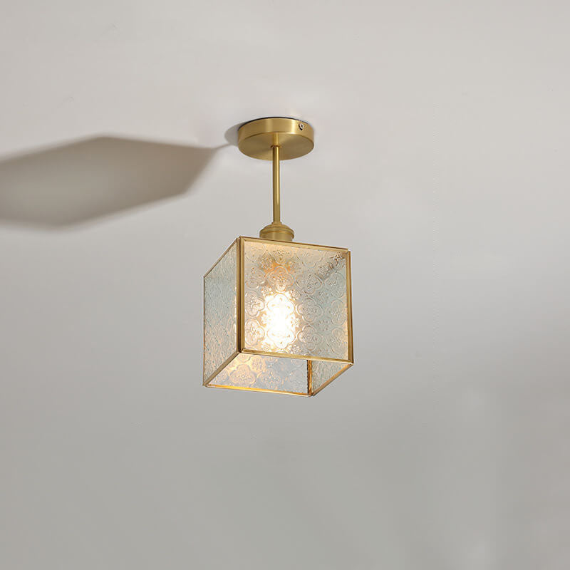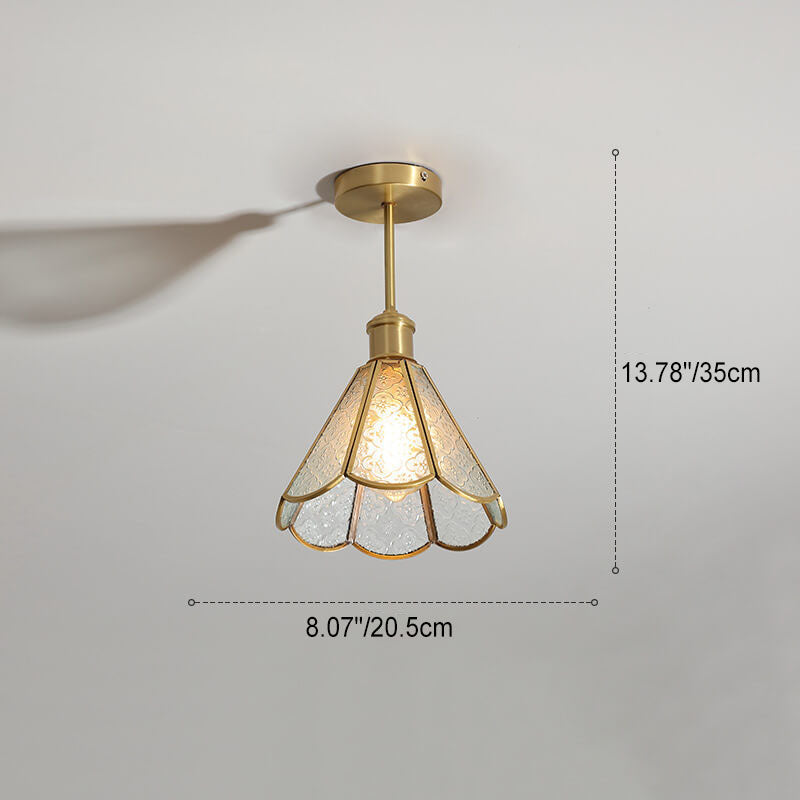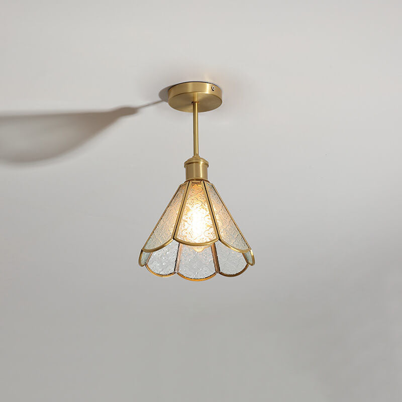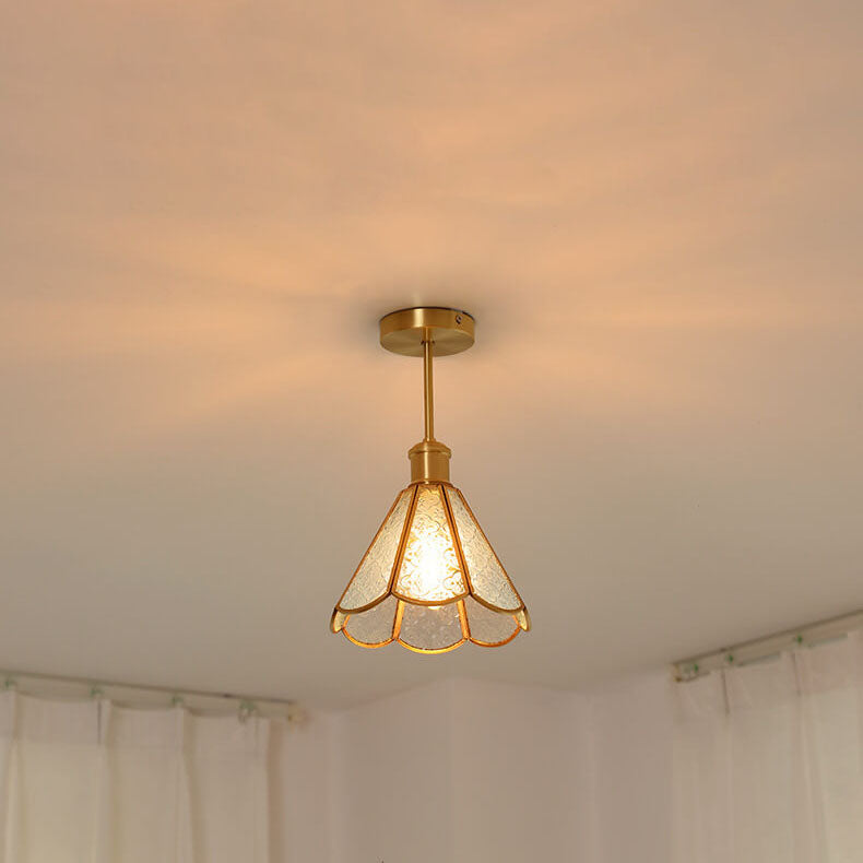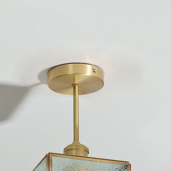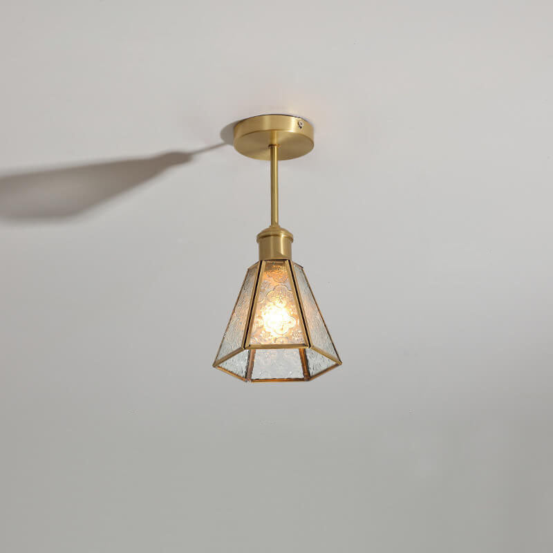 French Vintage Copper Gold Finish Frame Polygonal Glass 1-Light Semi-Flush Mount Ceiling Light