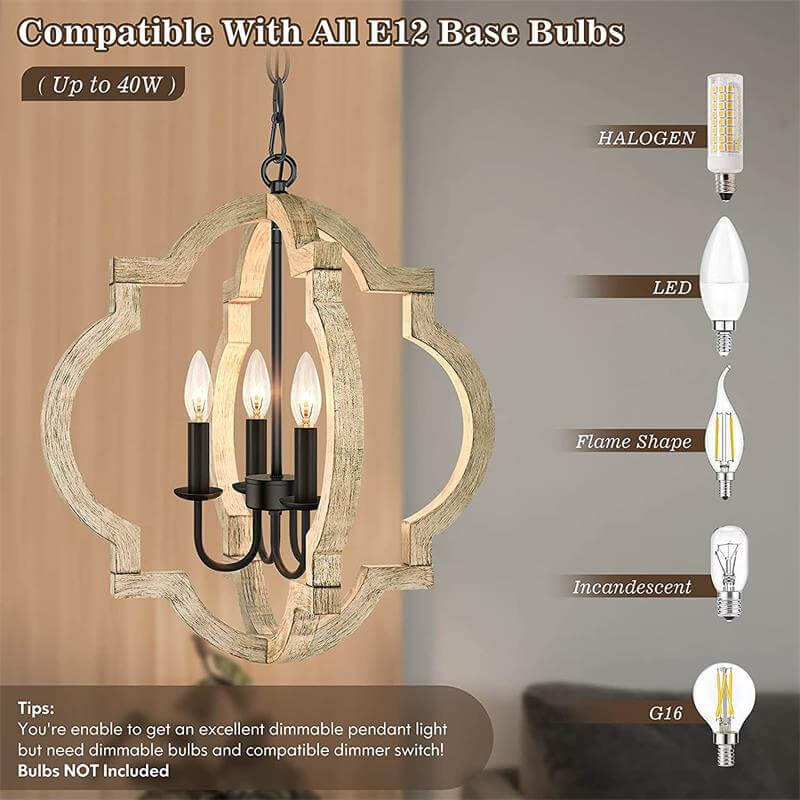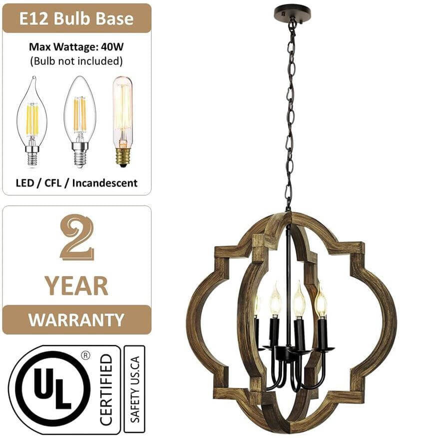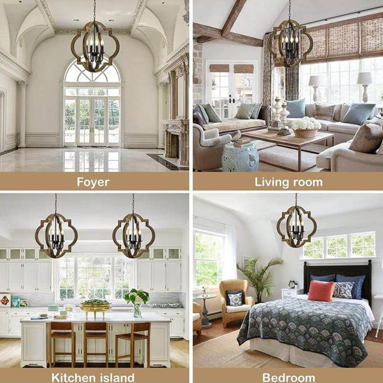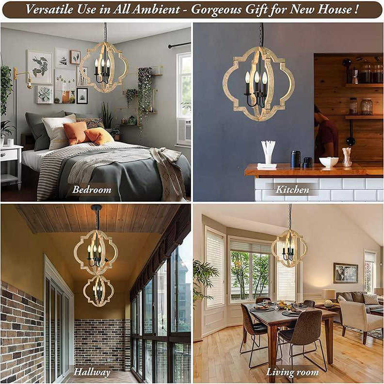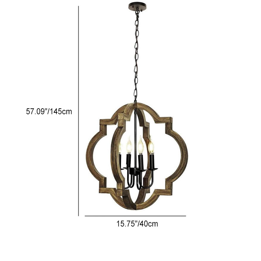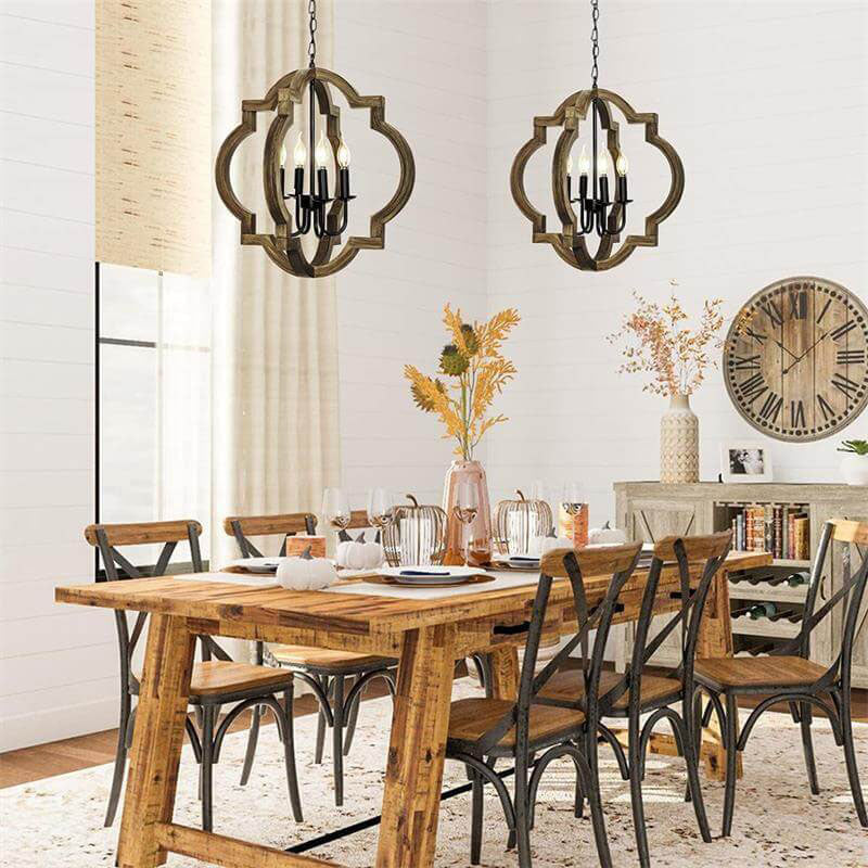 Industrial Creative Four-Sided Ring Candle Holder Iron Solid Wood 4-Light Pendant Light