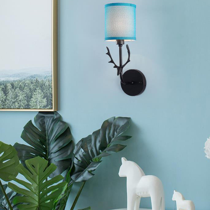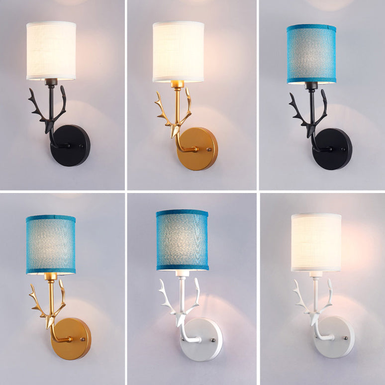 Industrial Fabric Creative Deer Head Design 1-Light Wall Sconce Lamp
