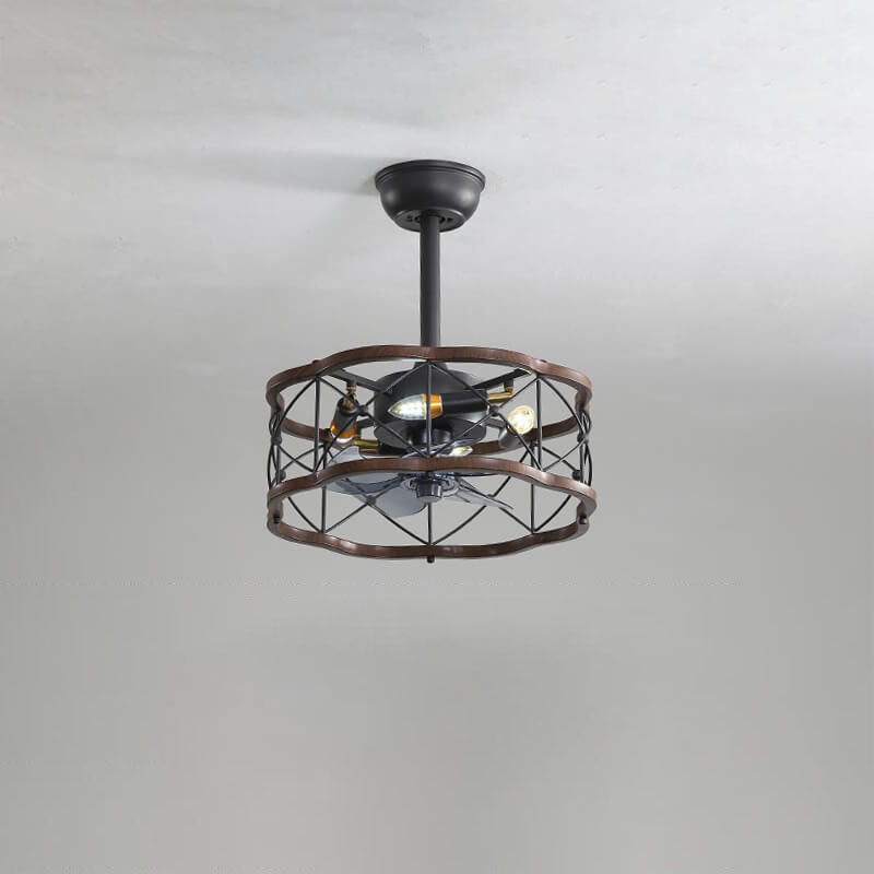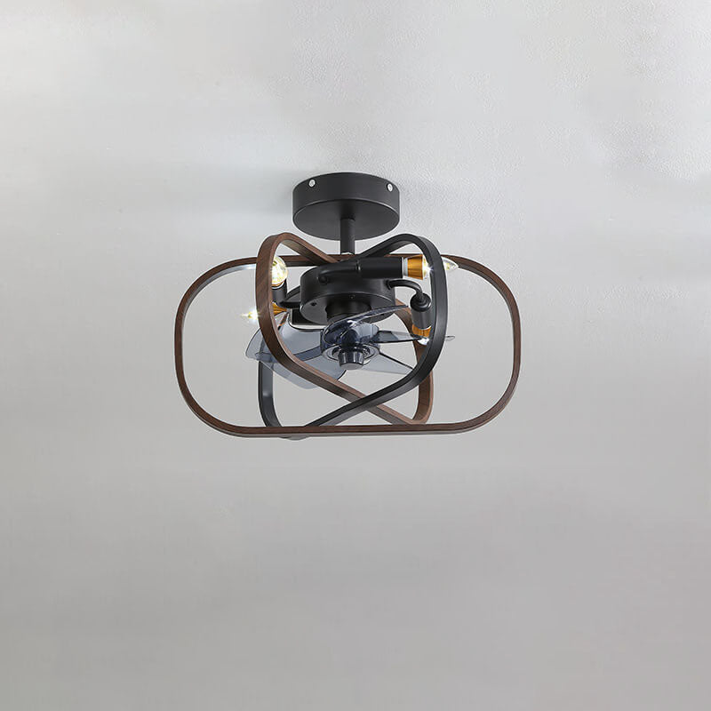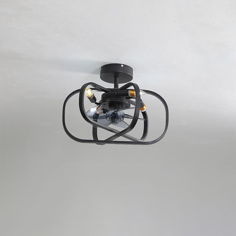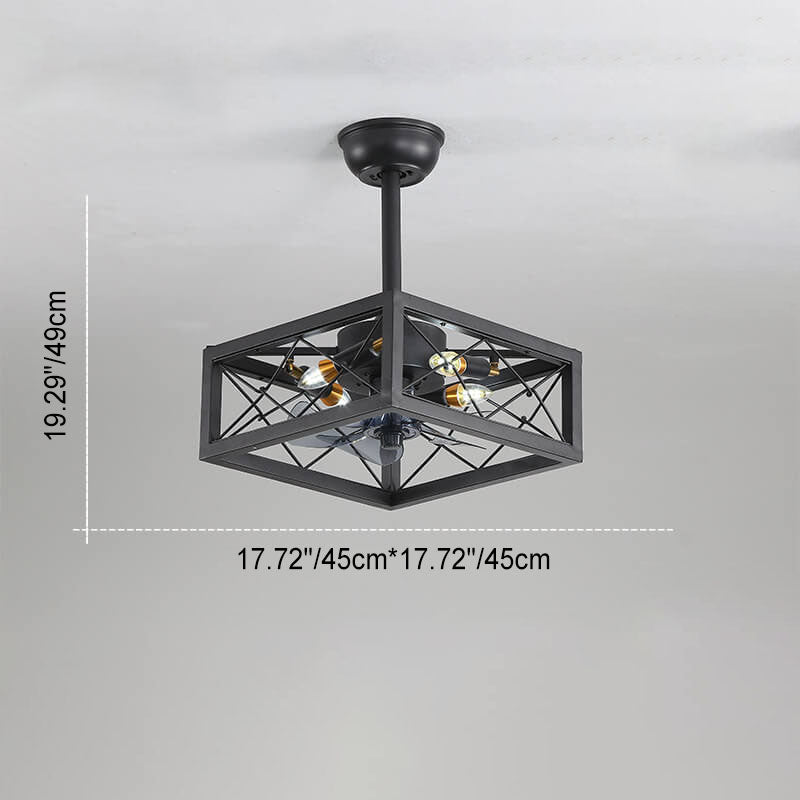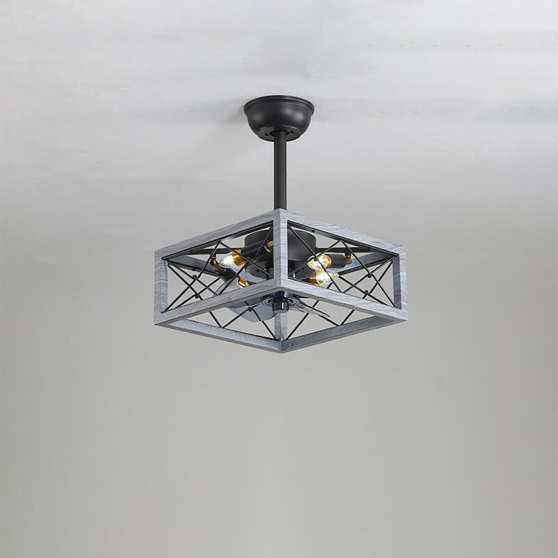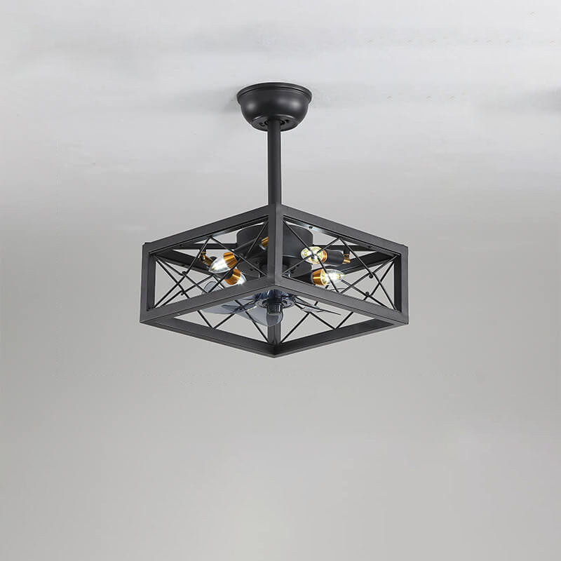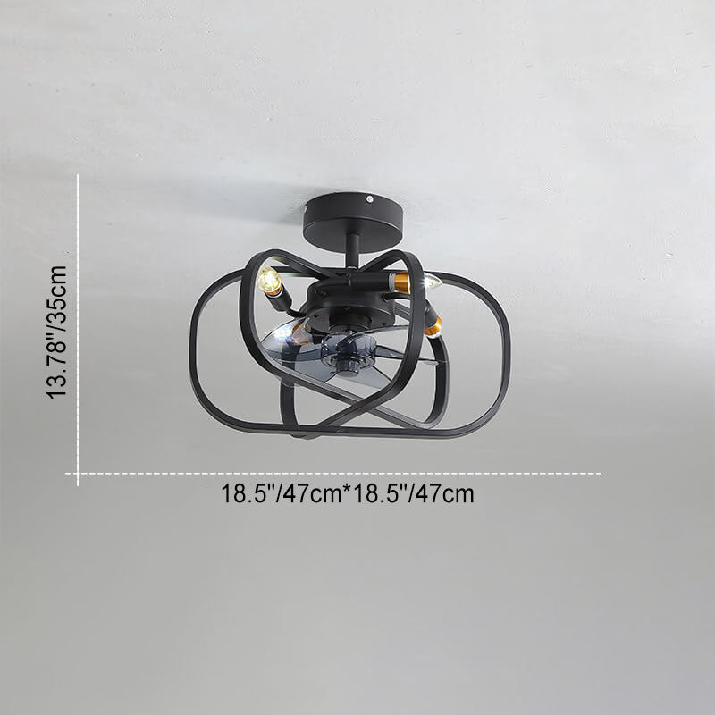 Industrial Minimalist Copper Iron Round Square 4-Light Semi-Flush Mount Ceiling Fan Light