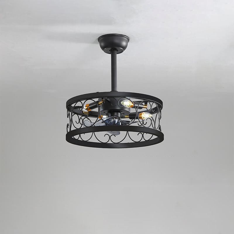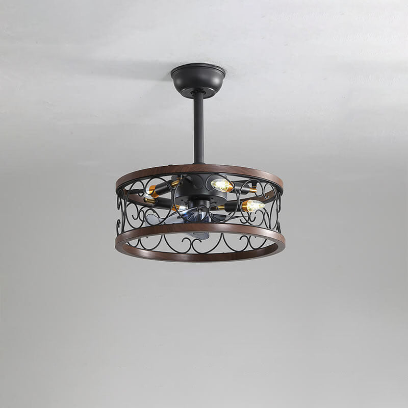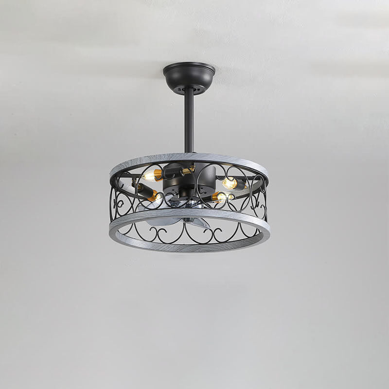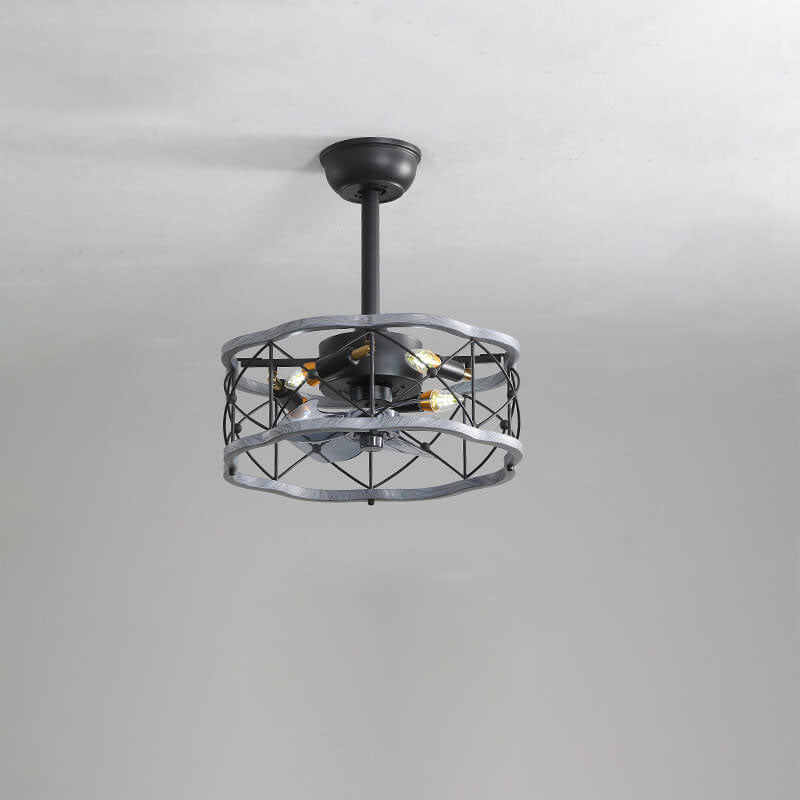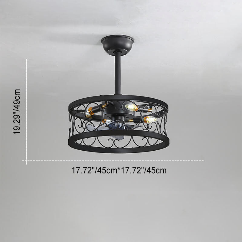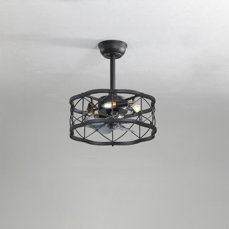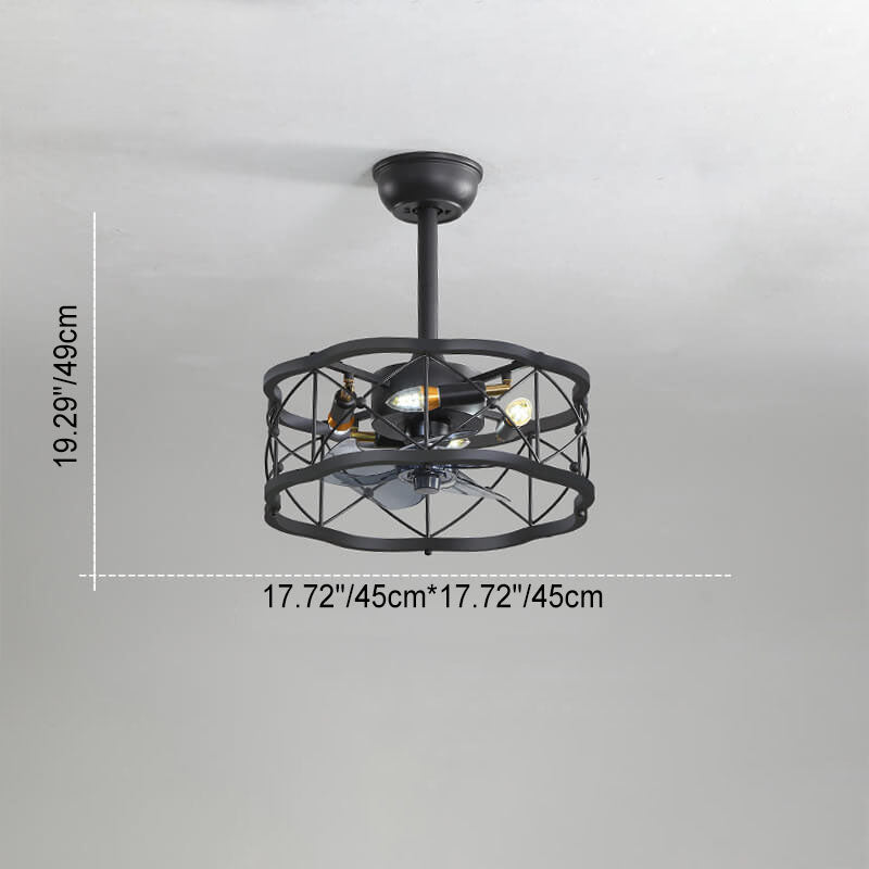 Industrial Minimalist Copper Iron Round Square 4-Light Semi-Flush Mount Ceiling Fan Light