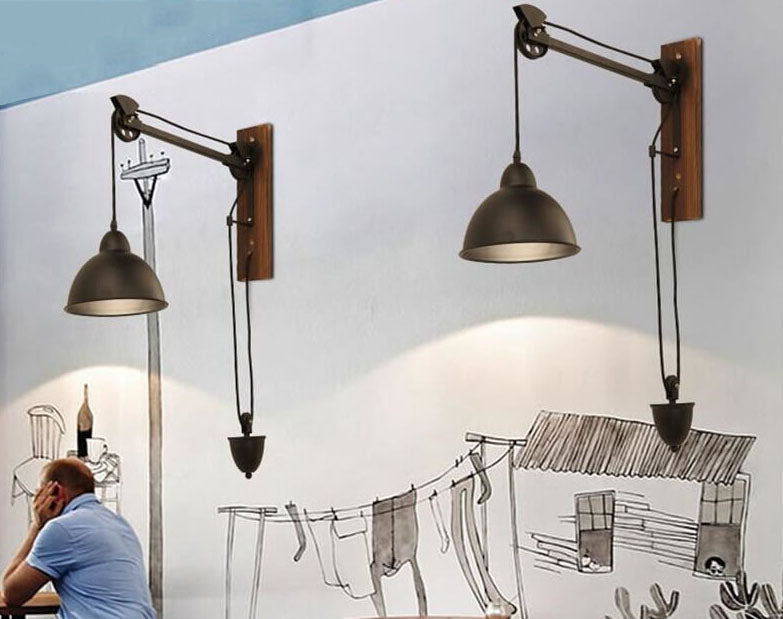 Industrial Retro Pulley Iron 1-Light Wall Sconce Lamp